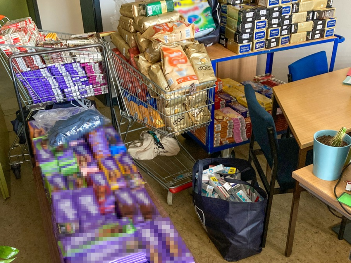 Einer Zivilstreife der Marburger Polizei fiel am vergangenen Mittwochabend (22. Oktober) gegen 19.45 Uhr ein Auto in der Cappeler Straße / Zeppelinstraße auf. Die Beamten kontrollierten den mit zwei Personen besetzten Pkw. Sie öffneten die Fahrzeugtüren und stellten fest, dass nahezu der gesamte Fahrzeuginnenraum - teilweise bis unter den Dachhimmel - mit Lebensmitteln und Hygieneartikel beladen war. Zudem saß auf der Rücksitzbank ein Mitfahrer, der mehrere Lebensmittel aus seinen Jacken- und Hosentaschen holte und diese anschließend im Fahrzeug verstaute. Bei der Durchsuchung der beiden 35 und 44 Jahre alten Männer fiel auf, dass diese sogenannte "Klauwesten" unter ihrer Oberbekleidung trugen. In der Weste des 44-Jährigen steckten 33 Tafeln Schokolade. In seiner Hose hatte er mehrere Packungen Zahnpasta verstaut. Für die Ordnungshüter ergaben sich Anhaltspunkte für einen gewerbsmäßigen Diebstahl. Sie nahmen das Duo schließlich fest. Insgesamt stellten die Kollegen 1029 Tafeln Schokolade, 207 Packungen Kaffee und 91 Tuben Zahnpasta sicher. Aufgrund fehlender Haftgründe wurden die Männer auf Entscheidung der Staatsanwaltschaft Marburg nach Beendigung der Identitätsfeststellung und erkennungsdienstlichen Behandlung aus dem Polizeigewahrsam entlassen. Zuvor mussten sie eine Sicherheitsleistung bei der Polizei hinterlegen. Im Rahmen von weiteren Ermittlungen klären Ermittler der Polizei in Marburg nun, in welchen Supermärkten oder Drogerien die Männer auf Diebestour gingen.