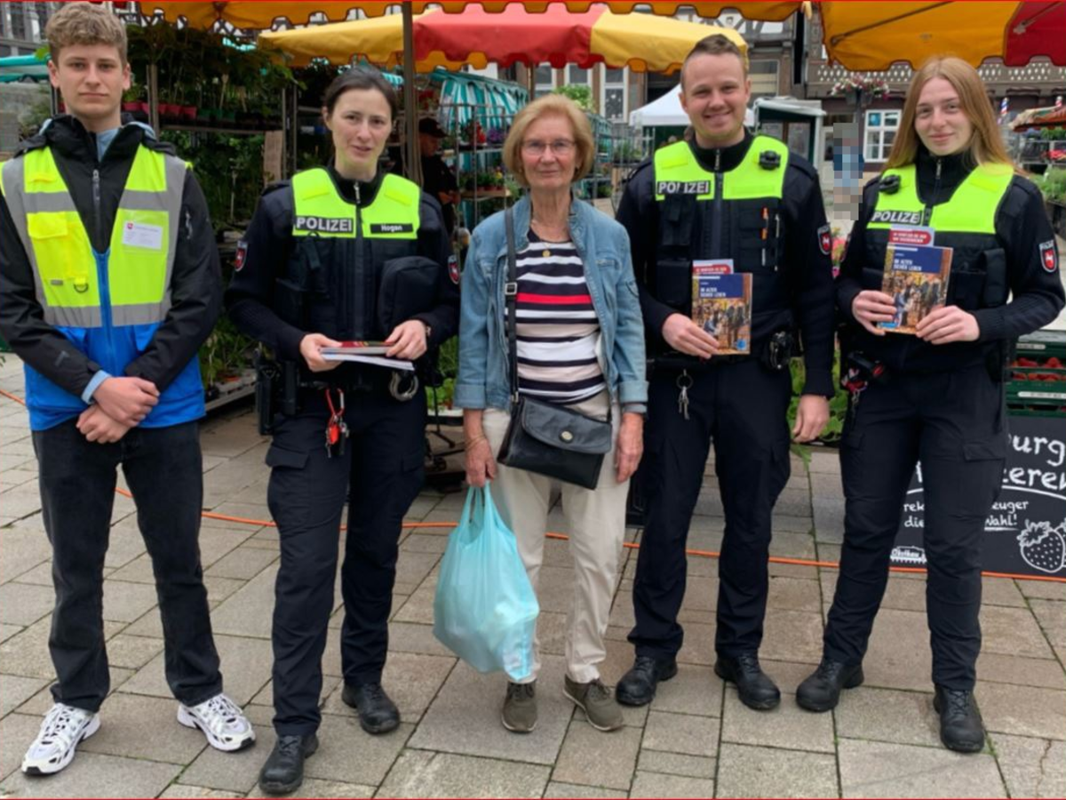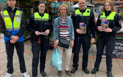 All dies nahmen drei Studierende (Foto) der Polizeiakademie Hann. Münden, die aktuell im ermittelnden Bereich des Polizeikommissariats tätig sind, Ende Mai zum Anlass, eigenständig eine Präventionsaktion zum Thema "Taschendiebstahl" für Seniorinnen und Senioren zu planen, zu organisieren und mit personeller Unterstützung der Innenstadtwache Hann. Münden sowie des Einsatz- und Streifendienstes durchzuführen. Vor verschiedenen Märkten des Einzelhandels sowie auf dem Hann. Mündener Marktplatz wurden an zwei Tagen Informationsbroschüren verteilt und Interessierte beraten. Zudem boten die Gespräche auch die Möglichkeit, über weitere aktuelle Themen wie z.B. den Enkeltrick u. ä., zu sprechen und ein offenes Ohr für die Belange der Bewohnerinnen und Bewohner Hann. Mündens zu haben.