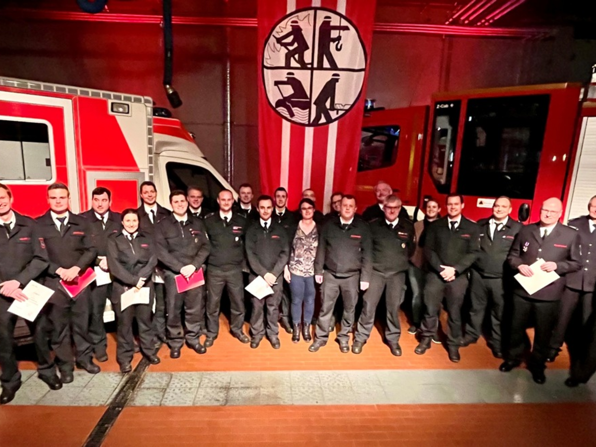 Sonderauszeichnungen des Verbands der Feuerwehren in NRW gingen für zehnjährige Zugehörigkeit an Leon Herring, Guido Brandenstein, Luis Helzel, Silvio Quade, Paul Kirchhoff und Melanie Block, für 40 Jahre an Carsten Schlipköter und für 50 Jahre an Josef Franzaring.