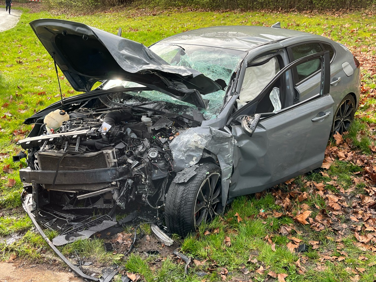 Durch die Wucht des Zusammenpralls wurde der PKW über einen Gehweg auf einen Grünstreifen geschleudert. Der 25-jährige PKW-Führer erlitt schwere Verletzungen im Bereich der Beine, der Hüfte und Arme. Da auch innere Verletzungen nicht auszuschließen waren, konnte eine Lebensgefahr zunächst nicht ausgeschlossen werden.
