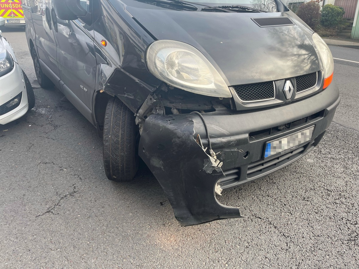 Der 41-Jährige befand sich um etwa 13.10 Uhr in seinem Ford Focus, den er an der Straße "Wasserloses Tal" auf Höhe der Hausnummer 47 auf einem Parkstreifen abgestellt hatte. Er beabsichtigte, aus der Parklücke auf die Fahrbahn zu fahren und stieß dabei mit einem Renault Trafic zusammen, der sich von hinten genähert hatte und in Richtung Volmestraße unterwegs war. In dem Renault befanden sich ein 62-jähriger Fahrer sowie eine 59-jährige Beifahrerin, die durch die Wucht des Zusammenstoßes leichte Verletzungen davontrug. Alarmierte Rettungskräfte behandelten die Frau an der Unfallstelle und brachten sie anschließend in ein Krankenhaus. Die eingesetzten Polizisten stellten am Ford und am Renault erhebliche Schäden fest. Aufgrund dessen mussten beide Fahrzeuge abgeschleppt werden. Es entstand ein geschätzter Gesamtschaden in Höhe von rund 10.000 Euro. Im Rahmen der Unfallaufnahme gab der 41-jährige Unfallverursacher an, dass er den Renault nicht gesehen hatte, wodurch es zu der Kollision kam. Die Ermittlungen zum Unfall übernimmt nun das Verkehrskommissariat der Hagener Polizei. (rst)