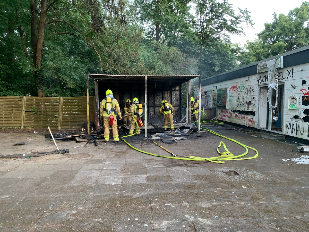 FW Hannover: Brand eines Kiosk der ehem. Radrennbahn Wülfel