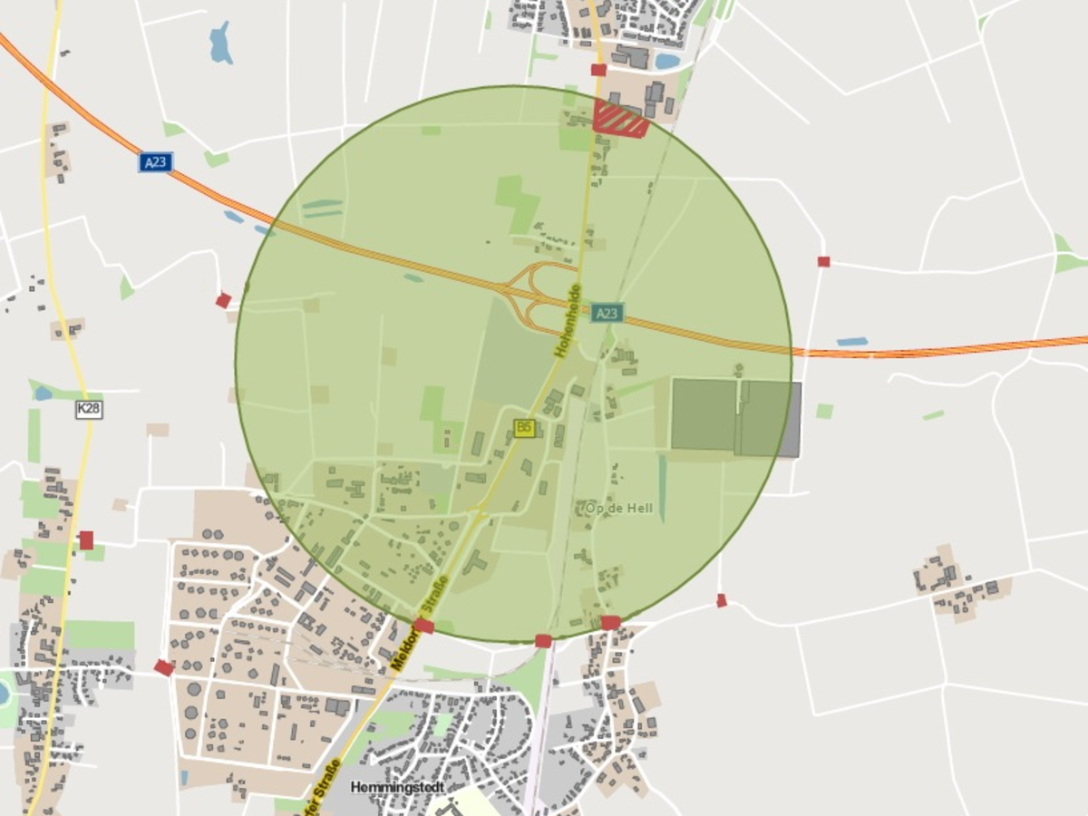 Die A 23 wird zwischen den Ausfahrten Albersdorf und Heide West voll gesperrt. Die Ausfahrt Heide-Süd ist nicht befahrbar. Autofahrende in Fahrtrichtung Heide werden ab der Ausfahrt Albersdorf über die B 431 in Richtung Meldorf umgeleitet und folgen dann der Landesstraße 153 über Nordermeldorf und Wöhrden sowie der B 203 zur Auffahrt Heide West. In Fahrtrichtung Hamburg führt die Umleitung in die entgegengesetzte Richtung.