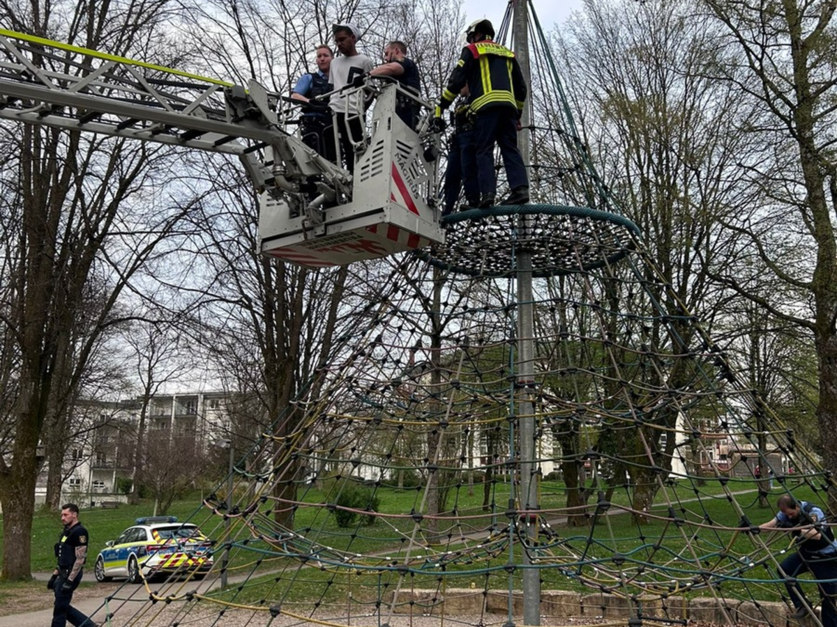 Hermeskeil - Mehrere Anrufer teilen am spĂ€ten Montagnachmittag mit, dass eine offensichtlich stark alkoholisierte mĂ€nnliche Person im Park randaliere, mit Flaschen werfen und weiterhin alkoholische GetrĂ€nke zu sich nehmen wĂŒrde. Mit Eintreffen der Polizei hatte sich die Person auf einem KlettergerĂŒst mit Plateau in Höhe von ca. 5 Metern, gelegt. Der Spielbereich, indem sich spielende Kinder aufhielten, wurde komplett gerĂ€umt um eine Gefahr durch Flaschenwurf oder Ă€hnliches fĂŒr unbeteiligte Dritte auszuschlieĂen. Die mĂ€nnliche Person reagierte auf polizeiliche Ansprache nicht und zeigte keine Regung. Einzige Möglichkeit mit der Person in direkten Kontakt zu treten, war die Hinzuziehung der Drehleiter der Feuerwehr Hermeskeil. Kommunikativ konnte die Person dann ohne weitere Vorkommnisse zum Abstieg gebracht werden, welcher eng durch die Polizei begleitet wurde. Durch den beherzten Einsatz der Polizei und Feuerwehr wurden weitere Eskalationen durch die mĂ€nnliche Person verhindert. Der Einsatz dauerte insgesamt eine Stunde.