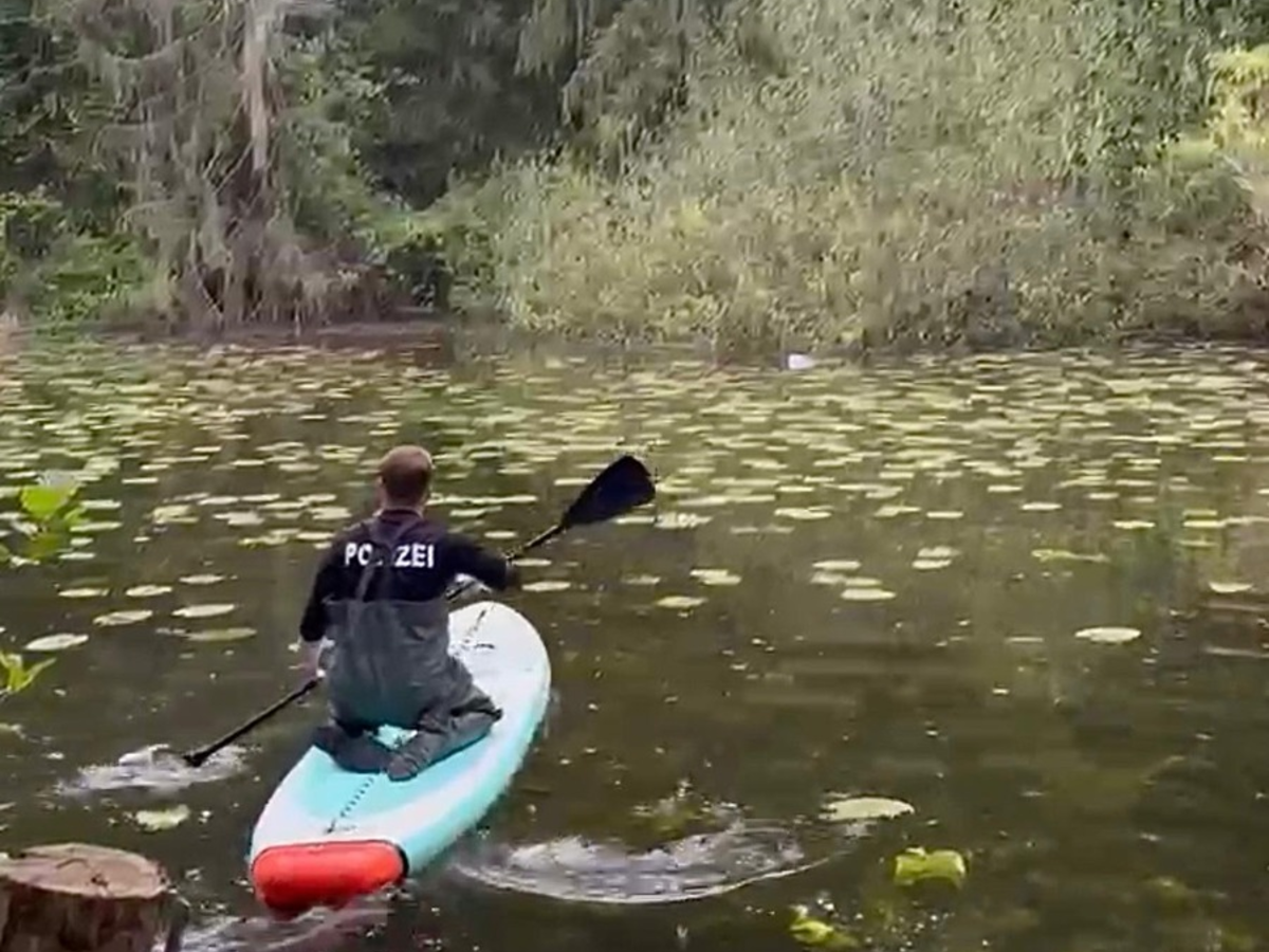 Hildesheim - Alfeld (neu) - Am Sonntag, den 04.05.2025, gegen 19:15 Uhr, meldete ein Hinweisgeber, dass ein unbekannter, anscheinend aufgeblähter Gegenstand in einem Teich treiben würde. Bei dem Teich handelte es sich um den sog. "Kluges Teich" in Verlängerung der Straße Zur Wulfskammer im Alfelder Ortsteil Gerzen. Vom Ufer aus konnten auch die Einsatzkräfte nicht genau erkennen, um was es sich bei dem treibenden Gegenstand handeln könnte. Da der Einsatz eines Bootes nicht möglich war, organisierte sich ein Polizeibeamter sein privates Stand-Up-Paddle-Board und konnte den Gegenstand bergen. Bei dem Gegenstand handelte es sich zum Glück nur um einen blauen Müllsack, in welchem ein altes Regenfass gestülpt war. Der Müll wurde letztlich entsorgt.