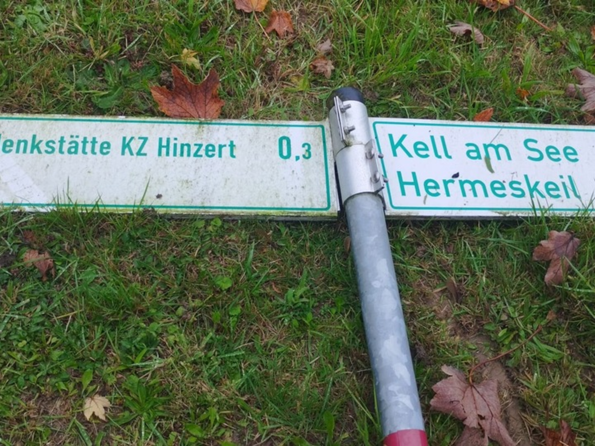 Gedenkstätte Hinzert - Schild am Radweg umgefahren und abgehauen