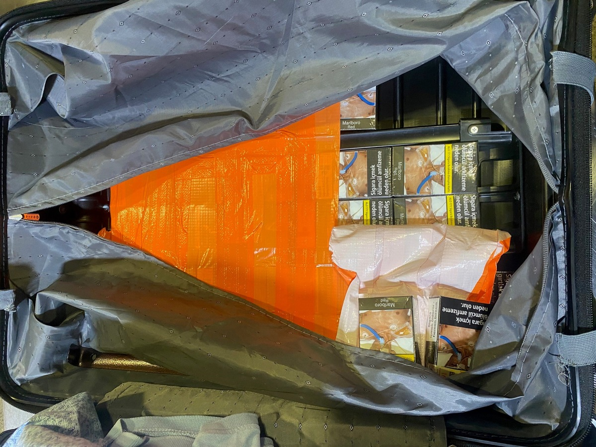 HZA-KA: Mit Gewebeband getarnt/ Zoll stellt über 3.500 Zigaretten im doppelten Kofferboden sicher