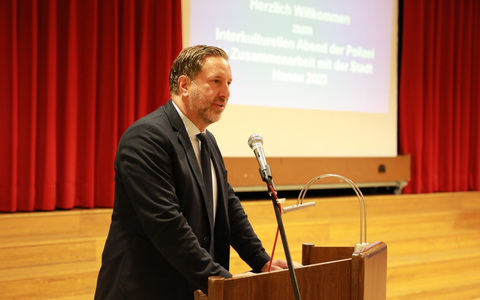 Nach einfĂŒhrenden Worten und der BegrĂŒĂung der GĂ€ste durch den Leiter der polizeilichen PrĂ€vention, Marc Sachs, eröffnete PolizeiprĂ€sident Daniel Muth als Gastgeber die Veranstaltung mit einem persönlichen GruĂwort. Darin benannte er auch die aktuellen internationalen Krisen. Gleichsam betonte er, dass trotz dieser weltweiten angespannten Lage, alle Akteurinnen und Akteure fĂŒr ein friedliches Zusammenleben arbeiten und fĂŒhrte dazu aus: "Die hessische Sicherheitsarchitektur erfordert den Beitrag vieler Akteurinnen und Akteure, damit kooperativ und zeitnah in der kommunalen KriminalprĂ€vention agiert werden kann. Daher ist es uns besonders wichtig, mit relevanten Akteuren wie den Migrantenselbstorganisationen vernetzt zu sein und eine Grundlage fĂŒr eine vertrauensvolle Zusammenarbeit zu schaffen. Weitere Akteure dieser Netzwerke sind Behörden, eine Vielzahl anderer Institutionen sowie letztlich auch die Zivilgesellschaft als Ganzes."