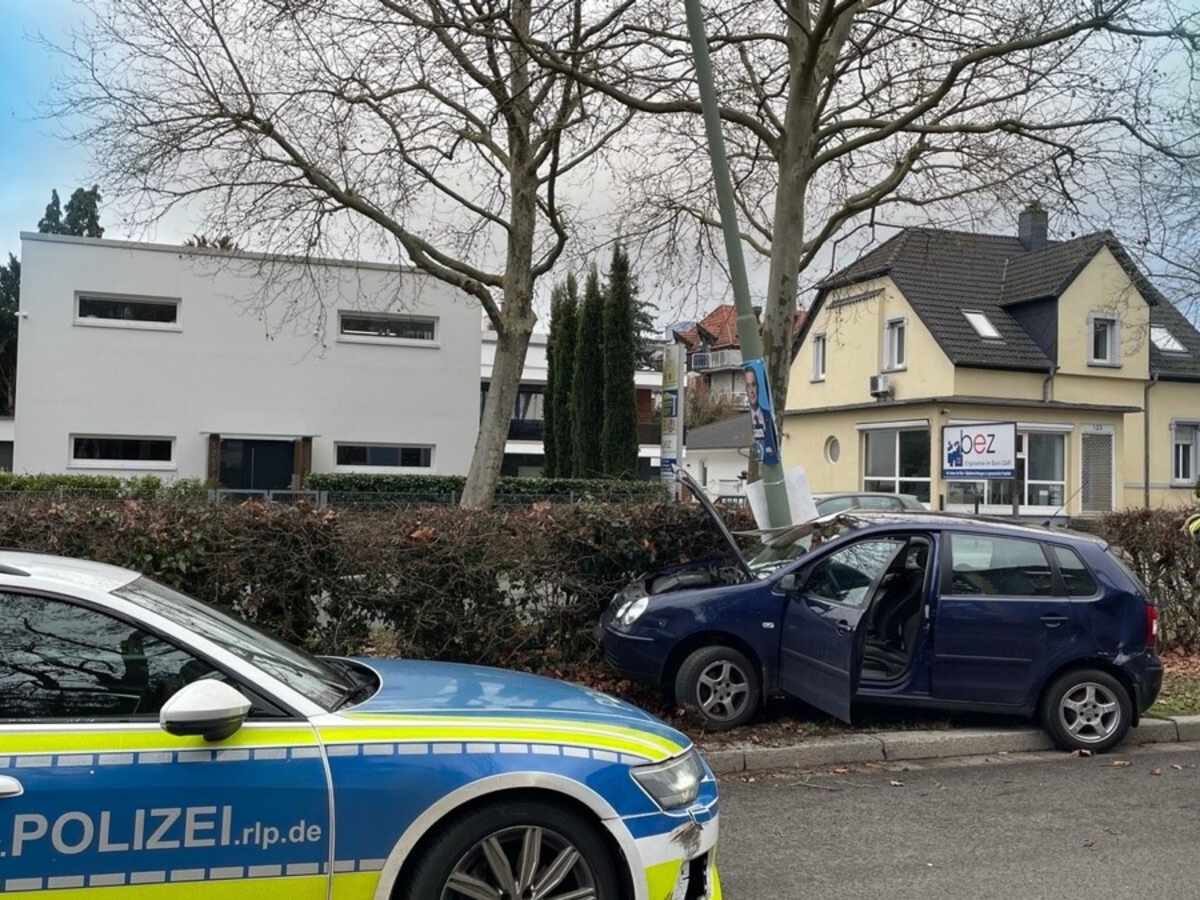 Kaiserslautern - Eine Verfolgungsfahrt hat es am Dienstagnachmittag in der Innenstadt gegeben. Ein 28-jähriger Autofahrer versuchte so, einer Verkehrskontrolle der Polizei zu entgehen. Die Beamten wurden durch die Fahrweise auf den Mann aufmerksam. Er war dabei, auf einem Supermarktparkplatz in der Nähe des Barbarossarings, zu parken. Als er den Streifenwagen bemerkte, wendete der Autofahrer ruckartig und fuhr in Richtung August-Hermann-Straße. Bei seinem Fluchtversuch beschleunigte der 28-Jährige unter anderem in einer Spielstraße auf etwa 50 Kilometer pro Stunde, gefährdete an einer Tankstelle Fußgänger und andere Verkehrsteilnehmer. In der Mannheimer Straße kam es letztlich zu einer Kollision zwischen dem Streifenwagen und dem VW Polo des Flüchtigen, als dieser das Polizeifahrzeug beim Spurwechsel seitlich streifte. Dabei verlor er die Kontrolle und stieß mit seinem Auto gegen einen Laternenmast. Bei der anschließenden Unfallaufnahme stellte sich heraus, dass der Mann keinen gültigen Führerschein besitzt. Ein Alkoholtest vor Ort ergab zudem einen Wert von 1,09 Promille bei dem 28-Jährigen.