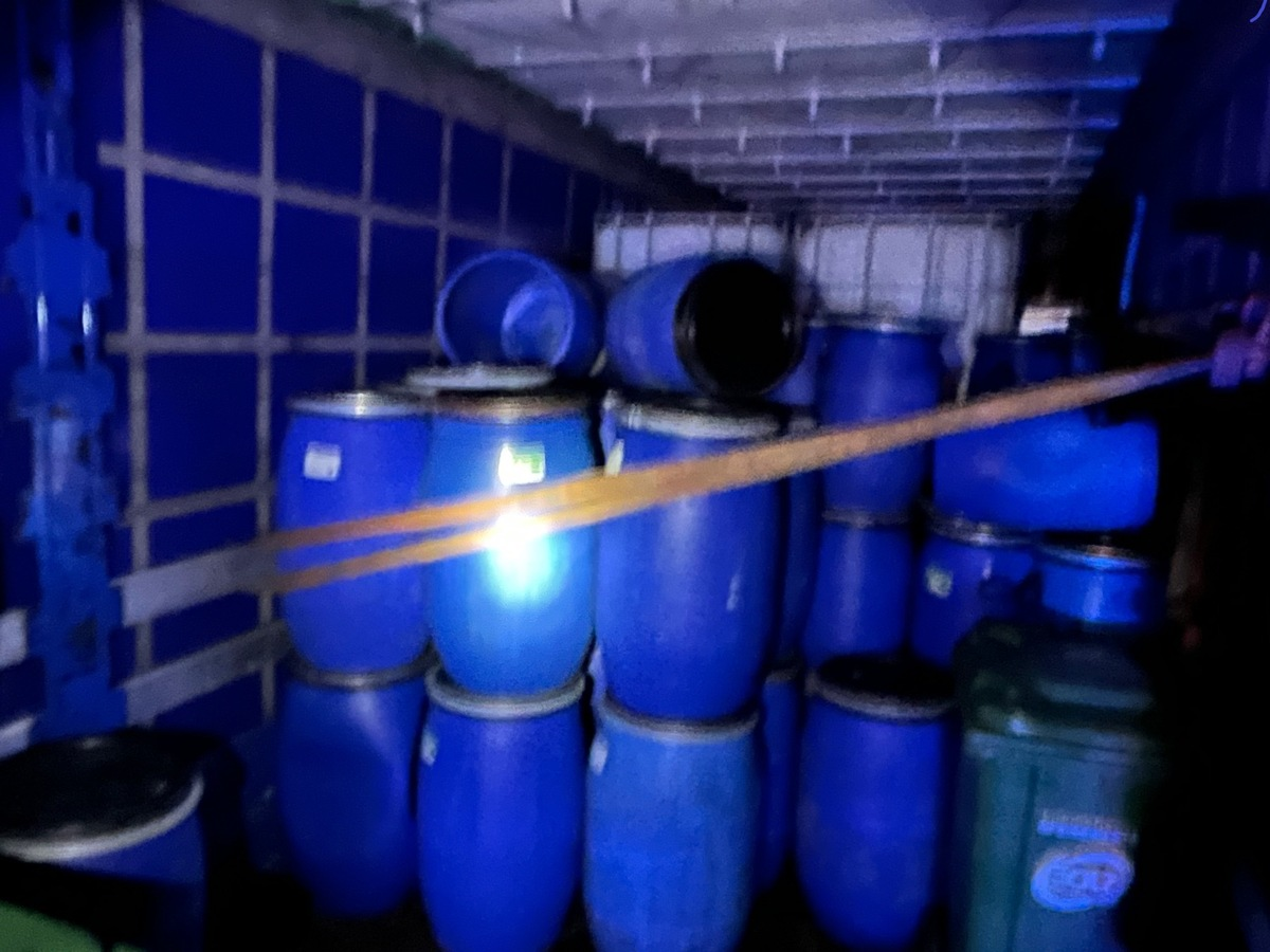 In dem Fahrzeug befanden sich zwei 25- und 35-jährige rumänische Staatsangehörige. Während der Kontrolle stellten die Beamten fest, dass das Fahrzeug im Bereich des Aufliegers offenbar Kraftstoff verlor. Bei einer Kontrolle des Laderaumes konnten, neben einem roten Schlauch mit mutmaßlich Kraftstoffanhaftungen, eine Pumpanlage und mehrere Behältnisse / Tanks aufgefunden werden. Die Behältnisse - u. a. 10 Tanks mit 1000l Fassungsvermögen und diverse 40l und 25l Behältnisse und Mülltonnen waren zum Teil mutmaßlich mit Kraftstoff gefüllt.