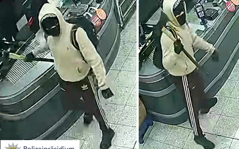 Der jüngere, männliche Täter ist ca. 1,70 Meter groß, schlank, hatte einen dunkleren Teint, war dunkel maskiert, trug ein Basecap mit kariertem Schild, eine weinrote Adidas-Hose, einen beigefarbenen Kapuzenpullover, dunkle Handschuhe, dunkle Sneaker und einen schwarzen Rucksack. Er soll Deutsch mit einem unbekannten ausländischen Akzent gesprochen haben.