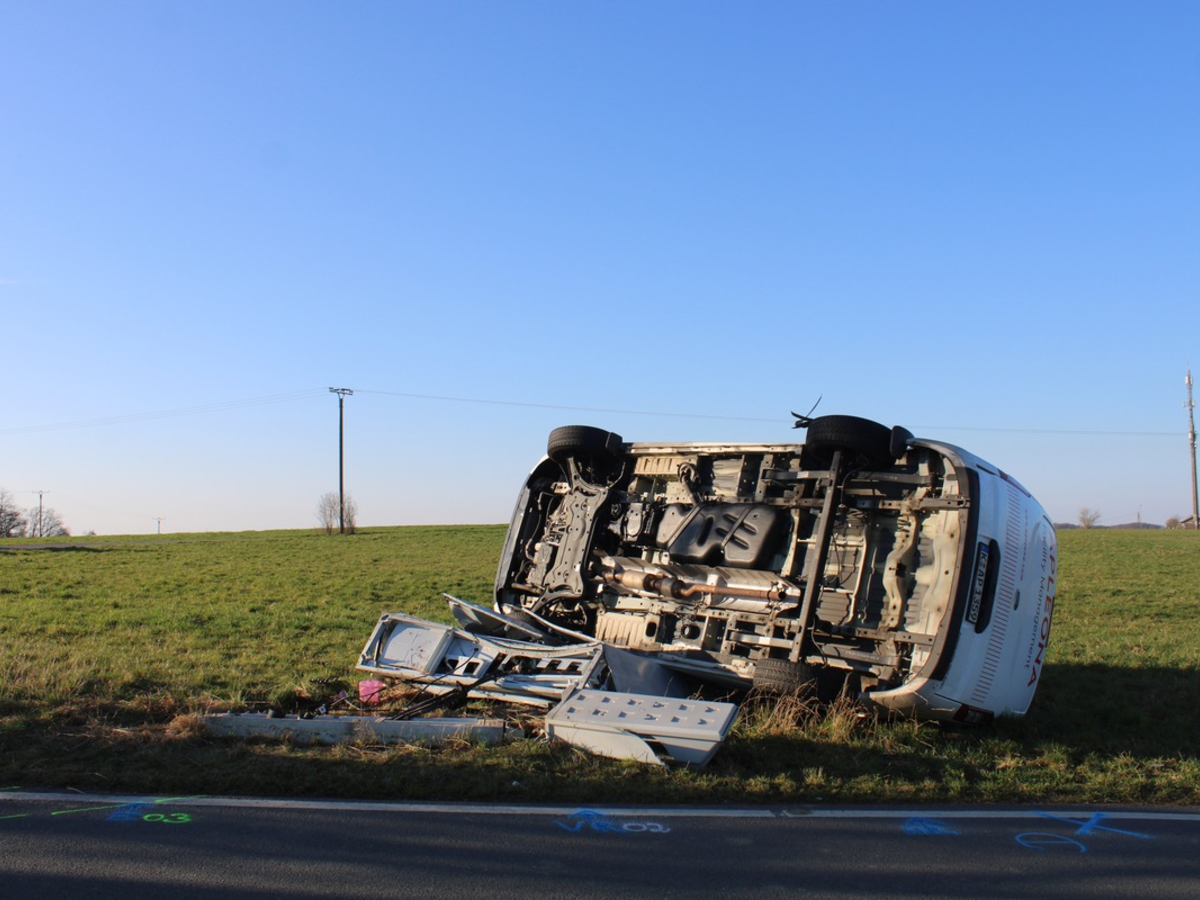 Bei dem Aufprall stieß die Front des Pkw gegen die linke Seite des Van. Der Fahrer des Van versuchte daraufhin auszuweichen und fuhr auf eine angrenzende Wiese. Auf der Wiese fuhr er gegen einen Stromkasten, welchen er stark beschädigte. Daraufhin überschlug sich der Van und kam auf der Seite zum Liegen.