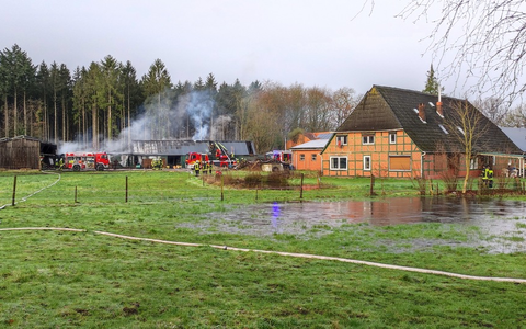 Unterstedt. Am Mittwochvormittag ist eine Lagerhalle auf einem landwirtschaftlichen Anwesen am Schulweg in Brand geraten. Ein Zeuge hatte das Feuer gegen 8 Uhr in dem etwa 10 x 80 Meter großen Gebäude entdeckt und sofort Feuerwehr und Polizei verständigt. Rund 100 Einsatzkräften umliegender Wehren gelang es, den Brand schnell zu kontrollieren. Dabei kam es zu starker Rauchentwicklung. Anwohner wurden mit einer Radiomeldung gewarnt und aufgefordert, Fenster und Türen zu verschließen. Im Brandobjekt lagerten unter anderem Arbeitsgeräte einer Garten- und Landschaftsbaufirma und zahlreiche Elektrokleinstgeräte. Durch die Feuerwehr musste das Hallendach abgedeckt werden. Nach vorläufiger Schätzung dürfte der Schaden bei etwa 80.000 Euro liegen. Personen kamen nicht zu Schaden. Bislang ist unklar, wie es zu dem Brand kommen konnte. Die Polizei hat ihre Ermittlungen aufgenommen.