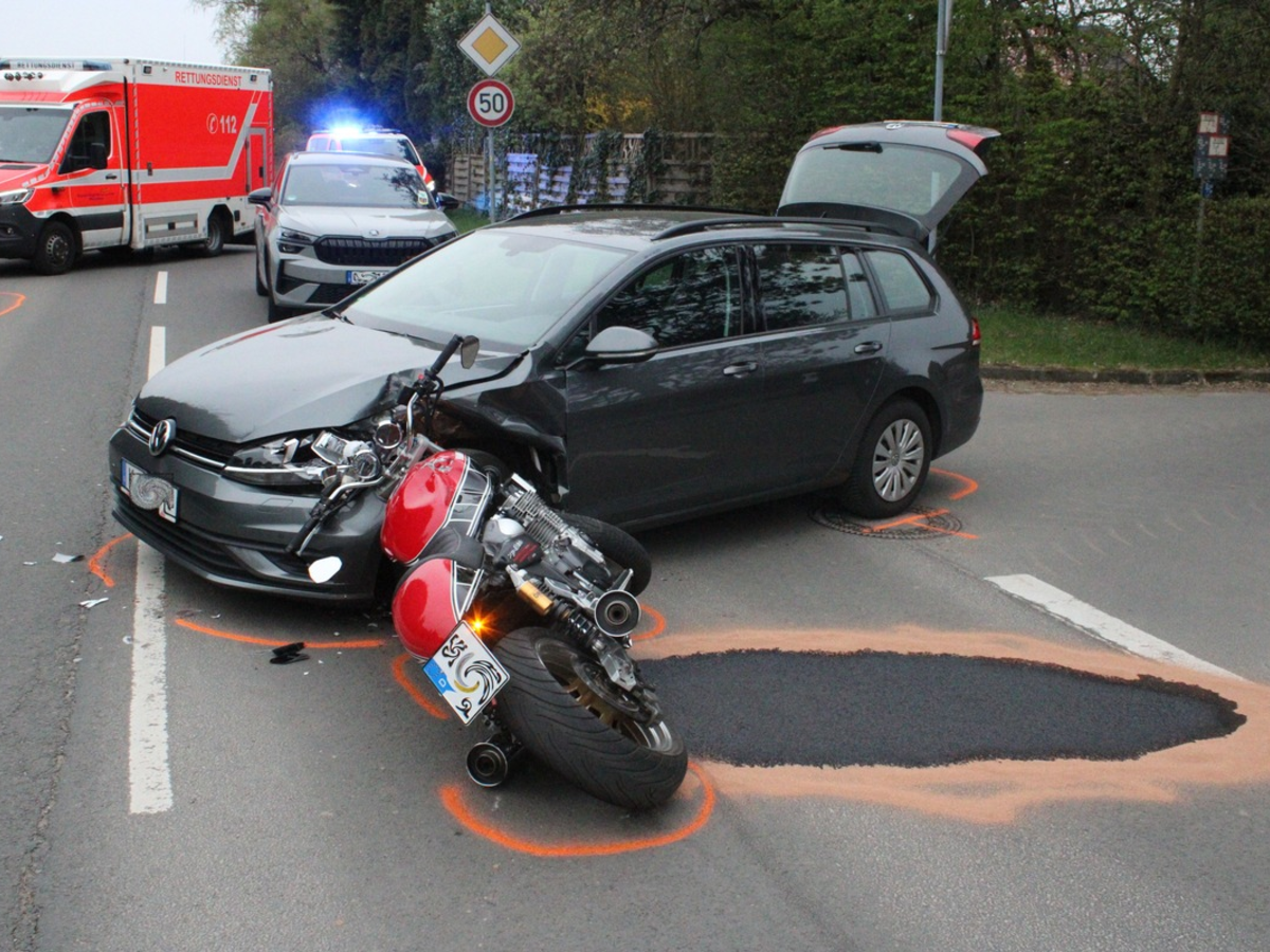 Zeugen alarmierten über Notruf den Rettungsdienst sowie die Polizei. Der Motorradfahrer wurde nach Erstbehandlung vor Ort mit einem Rettungswagen in ein Krankenhaus gebracht. Er war schwer verletzt, jedoch bestand zu diesem Zeitpunkt keine Lebensgefahr für ihn. Der Pkw-Fahrer blieb unverletzt.