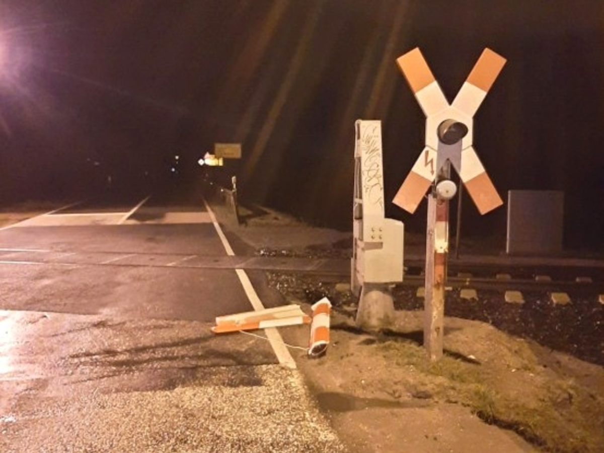 20.12.2023 - 11:52:48 | presseportal.deNach bisherigen Erkenntnissen, kam es am Bahnübergang Nordstraße zu einer Kollision mit einer geschlossenen Schrankenanlage. Hierbei wurde der halbseitige Schrankenbaum komplett zerstört und aus der Verankerung herausgerissen. In Folge dessen lag der zerbrochene Schrankenbaum im Straßenbereich.