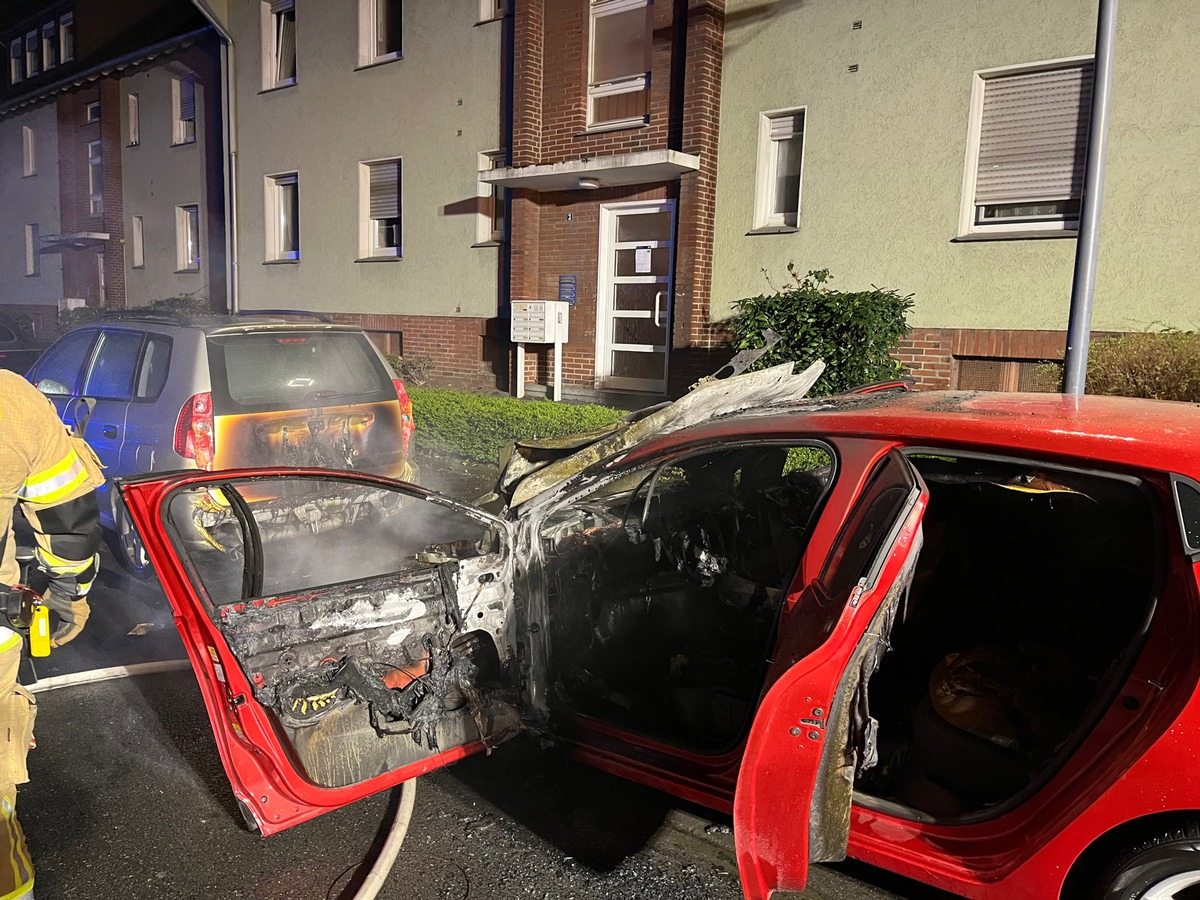 Lippstadt - Ein aufmerksamer Zeuge meldete gestern um 03:19 Uhr den Brand eines Pkw Renault Clio in der Landsberger Straße. Durch die herbeigerufene Feuerwehr wurde der Brand schnell gelöscht. Dennoch wurde ein vor dem Renault geparkter Pkw Ford in Mitleidenschaft gezogen. Nach derzeitigem Stand der Ermittlungen entstand der Brand im Bereich des Motorraums des völlig ausgebrannten Renault. Ob es sich um einen technischen Defekt, oder um Brandstiftung handelte, kann derzeit nicht gesagt werden. Zeugen, die verdächtige Wahrnehmungen gemacht haben, werden gebeten sich bei der Polizei in Soest unter der Telefonnummer 02921/91000 zu melden.