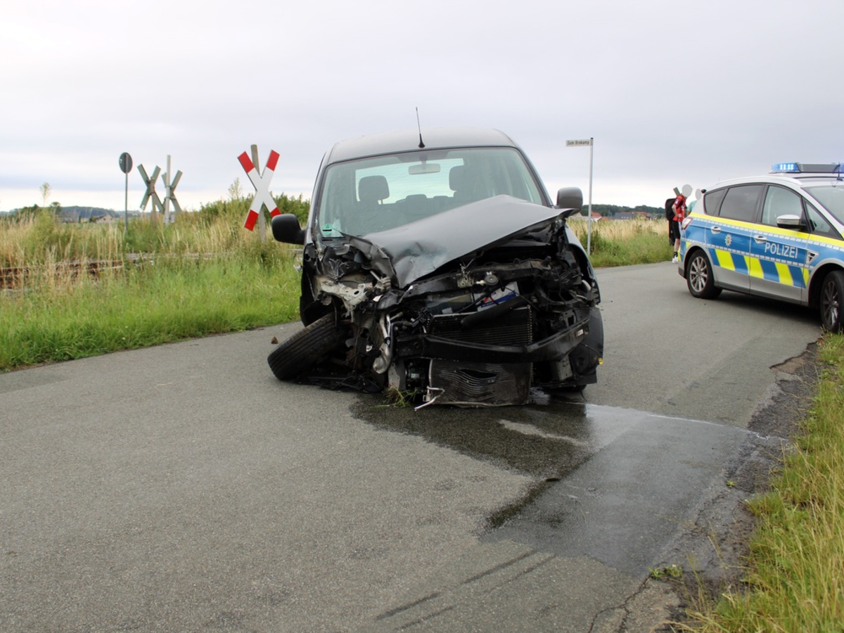 Den bisherigen Erkenntnissen nach befuhr ein Lübbecker mit seinem Renault zur Unfallzeit den Bahnweg in Richtung Bergstraße. In Höhe des unbeschrankten Bahnübergangs "Zum Brokamp" wollte er nach rechts in die gleichnamige Straße abbiegen. Da er die in Richtung Bielefeld fahrende Bahn - die auch Hupsignale gegeben hatte - wahrgenommen hatte, hielt der 85-Jährige seinen Wagen vor dem Bahnübergang an. Aus bisher unbekannten Gründen setzte sich der Senior mit seinem Wagen kurz vor Eintreffen der Eurobahn in Bewegung und kollidierte seitlich mit der Bahn. Nach einer Notbremsung kam die Bahn nach rund 65 Metern zum Stehen. Weder der Autofahrer noch die 18 Fahrgäste sowie die Kontrolleurin und der Triebwagenfahrer zogen sich Verletzungen zu.