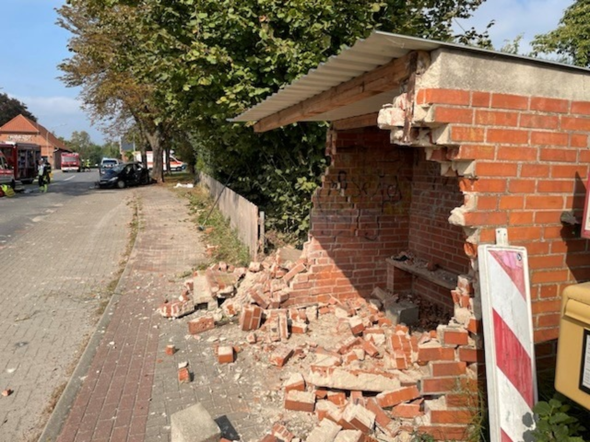 Wieren - Pkw kommt von der Fahrbahn ab - mit Bushaltestelle und Baum kollidiert - schwer verletzt