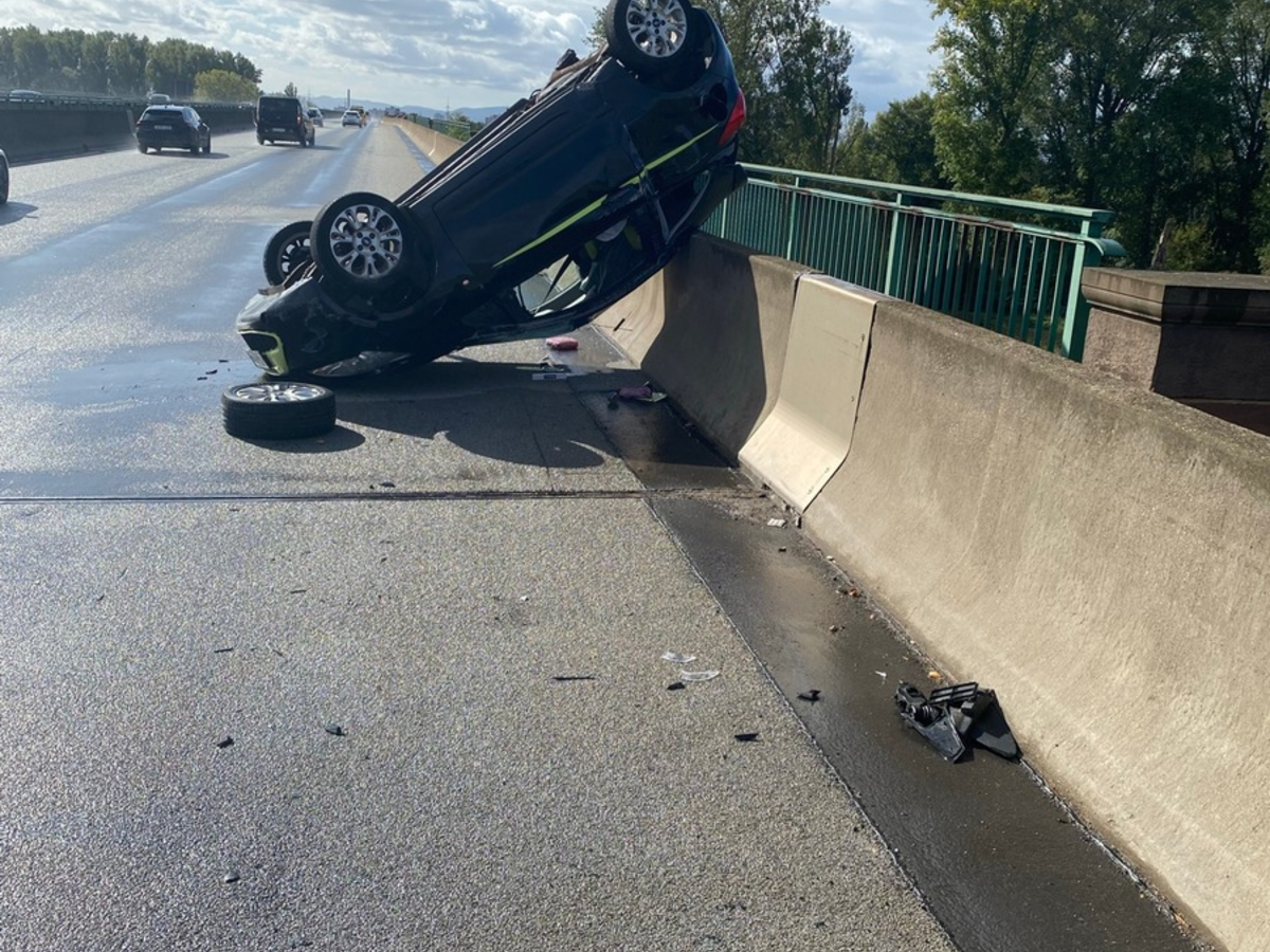 POL-PDNW: Autobahnpolizei Ruchheim - Fahrzeug überschlägt sich auf Rheinbrücke - Foto: presseportal.de