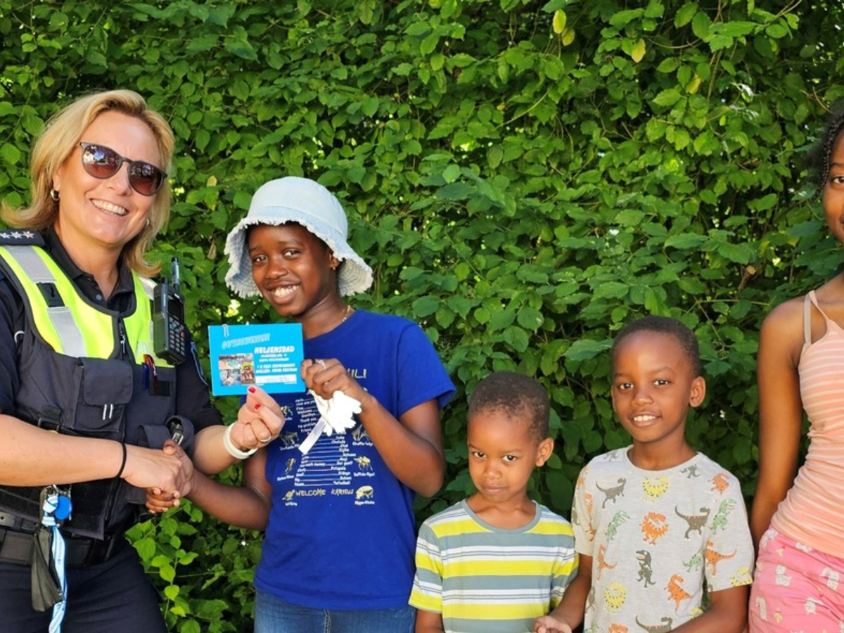 Kinder, die alle drei Lochungen im Mobipasses erhalten haben, konnten bis zum Ende des Schuljahres 2023/2024 an einer Verlosung teilnehmen. Die Ziehung der Gewinnerinnen und Gewinner aus über 100 Teilnehmenden erfolgte am 8.Juli 2024. Die insgesamt 20 Gewinne, Freitzeitgutscheine für die ganze Familie, der diesjährigen Mobipass-Verlosung wurden seit Ende Juli ausgehändigt. Am 6. August 2024, erfolgte eine Gewinnübergabe in Mettmann. Auf dem Bild freut sich Tyra Kariuki, zusammen mit ihren 3 Geschwistern über einen Gutschein für das Heljenbad in Heiligenhaus. Überreicht wurde der Gewinn durch Polizeihauptkommissarin Katja Lindemann von der Präventionsdienststelle der Direktion Verkehr.