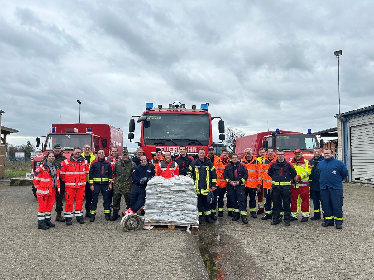 Mönchengladbach-Holt, 03.2024, Lilienthalstraße - Die Folgen des Klimawandels zeigen sich vermehrt durch Starkregenereignisse und damit verbunden durch heftige Überflutungen von Gemeinden. Ausbilder der Bundesanstalt Technisches Hilfswerk (THW) verfügen über weitreichende Schulungen und Erfahrungen zum Thema Hochwasserschutz und Naturgefahren. Im März 2024 fand unter der Leitung des Ortsverbandes Mönchengladbach des THW ein Seminar auf dessen Gelände statt, an dem Vertreter der Hilfsorganisationen Arbeiter Samariter Bund (ASB), Deutsches Rotes Kreuz (DRK), Johanniter Unfallhilfe (JUH) und Malteser Hilfsdienst (MHD), des Kreisverbindungskommandos der Bundeswehr, der Freiwilligen Feuerwehr sowie der Berufsfeuerwehr teilnahmen. Sehr anschaulich wurden im theoretischen Teil u. a. naturwissenschaftliche Grundlagen, Gefahren, Einsatzplanung, Umgang mit Sandsäcken - von der Befüllung bis zum Verlegen -, Umgang mit Spontanhelfenden, usw. vermittelt. Am zweiten Tag konnten viele dieser Themen in der Praxis geübt werden. Auf diese Weise konnten die den Hilfsorganisationen zu diesem Zweck durch die Feuerwehr Mönchengladbach überlassenen Gerätewagen-Logistik auf Unimog Basis mit zusätzlicher Hochwasserschutzbeladung auf Tauglichkeit getestet werden. Die Intensivierung der Zusammenarbeit aller im Katastrophenschutz Beteiligten und die Vermittlung von Fertigkeiten und Wissen auf aktuellem Niveau waren die Ziele dieses Seminares.