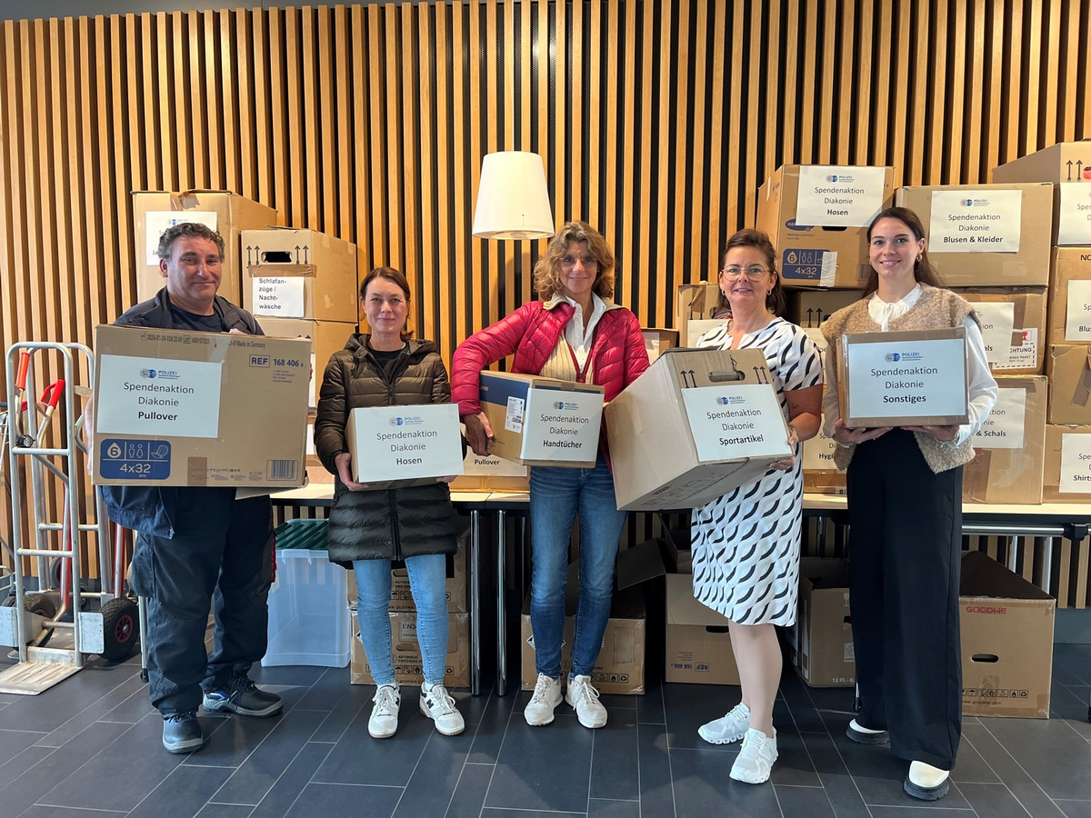 "Diese enge Zusammenarbeit ist durchaus nicht selbstverständlich", sagte die Leiterin des Fachbereichs Wohnungslosigkeit Brigitte Bloschak, als sie die gesammelten Spenden sah, und zeigte sich von Art und Umfang der Aktion begeistert. Begleitet wurde sie von Sozialarbeiterin Mascha Theißen und Hausmeister Wilhelm Bär, die beim Verladen der Kartons ebenfalls tatkräftig mit anpackten.