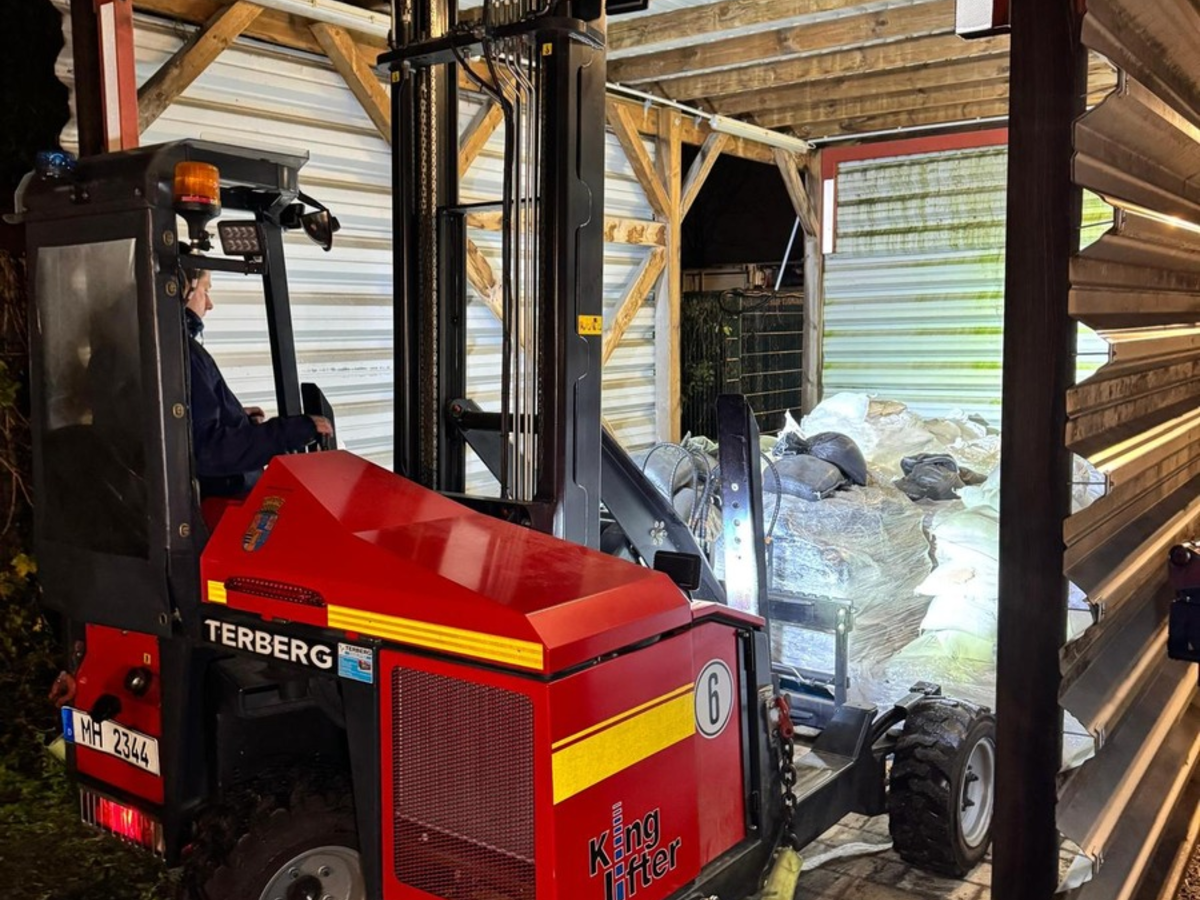 20.11.2024 - 16:30:00 | presseportal.deDie Feuerwehr Mülheim stellte rund 1.800 Sandsäcke bereit, die zum Schutz von Gebäuden und Grundstücken eingesetzt wurden. Zusätzlich kam ein sogenannter Manitou (ein geländegängiger Teleskoplader) zum Einsatz, um gemeinsam mit den Velberter Einsatzkräften einen umgestürzten Baum aus einem Bachlauf zu bergen. Diese Maßnahme war notwendig, um einen weiteren Rückstau und mögliche Überschwemmungen zu vermeiden.
