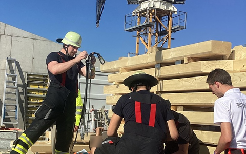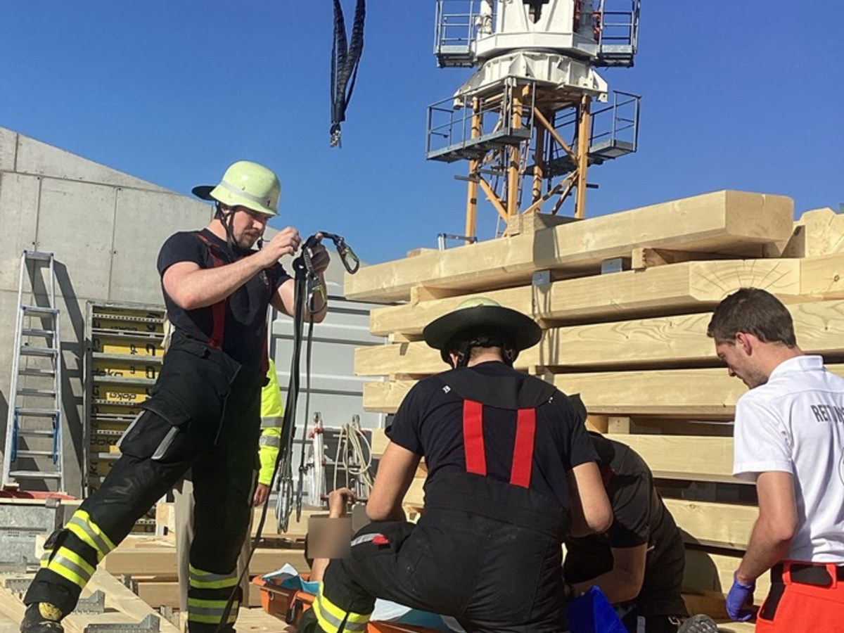 Bei einem Sturz auf einer Baustelle hat sich ein Bauarbeiter am gestrigen Nachmittag verletzt. Die Feuerwehr nutzte vorhandene Möglichkeiten, um den Mann so schonend wie möglich zu retten.