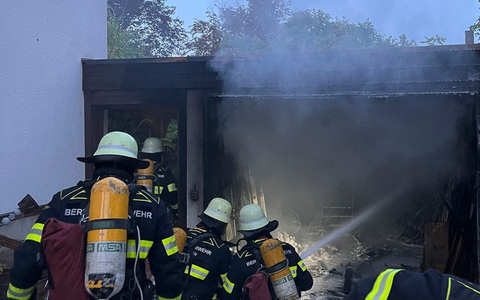 Der Löschzug der Feuerwache Pasing befand sich auf der Rückfahrt von einem vorherigen Einsatz, als die Einsatzkräfte über Funk zu einer Garage in Vollbrand in der Brückestraße beordert wurden. Schon in den ersten Notrufen wurden kleinere Explosion geschildert. Bereits auf der Anfahrt war eine tiefschwarze Rauchsäule zu sehen. Vor Ort bestätigte sich die Lage. Die Eigentümer teilten dem Einsatzleiter mit, dass sich noch Gasflaschen im Brandobjekt befinden. Das Feuer drohte zudem, auf das angrenzende Haus sowie umliegende Bäume überzugreifen. Umgehend wurde ein Löschangriff aufgebaut. Ein Trupp unter Atemschutz leitete die Brandbekämpfung mit einem Löschrohr ein. Im weiteren Verlauf intensivierte man die Maßnahmen mit Löschschaum, die mittlerweile eingetroffene Freiwillige Feuerwehr unterstütze hierbei. Nach einer Stunde konnte der Leitstelle "Feuer aus" gemeldet und der Einsatz beendet werden.