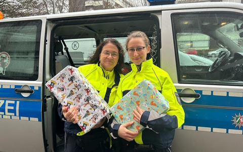 Münster - Einen Streifenwagen voll Geschenke haben Beamte der Polizei Münster heute (21.12.) an die Station 17B, die Kinderneurologie der Uniklinik Münster, übergeben. Bereits seit 37 Jahren spenden Angehörige des Polizeipräsidiums Münsters für diese Weihnachtsaktion der Kinderneurologie. Mit einer diesjährigen Spendensumme von 2486,15 EUR wurden Spielmatten, Puppen, Schlafsäcke und andere Geschenke gekauft. Die liebevoll eingepackten Pakete wurden neugierig von den kleinen Patienten, deren Eltern und dem Klinikpersonal ausgepackt. "Auch in diesem Jahr konnten wieder alle Wünsche des Wunschzettels der Kinderneurologie erfüllt werden", resümieren die Organisatoren Michael Volmer, Theresa Brinkmann und Kerstin Hagemann von der Dienststelle "Verkehrsunfallprävention/ Opferschutz".