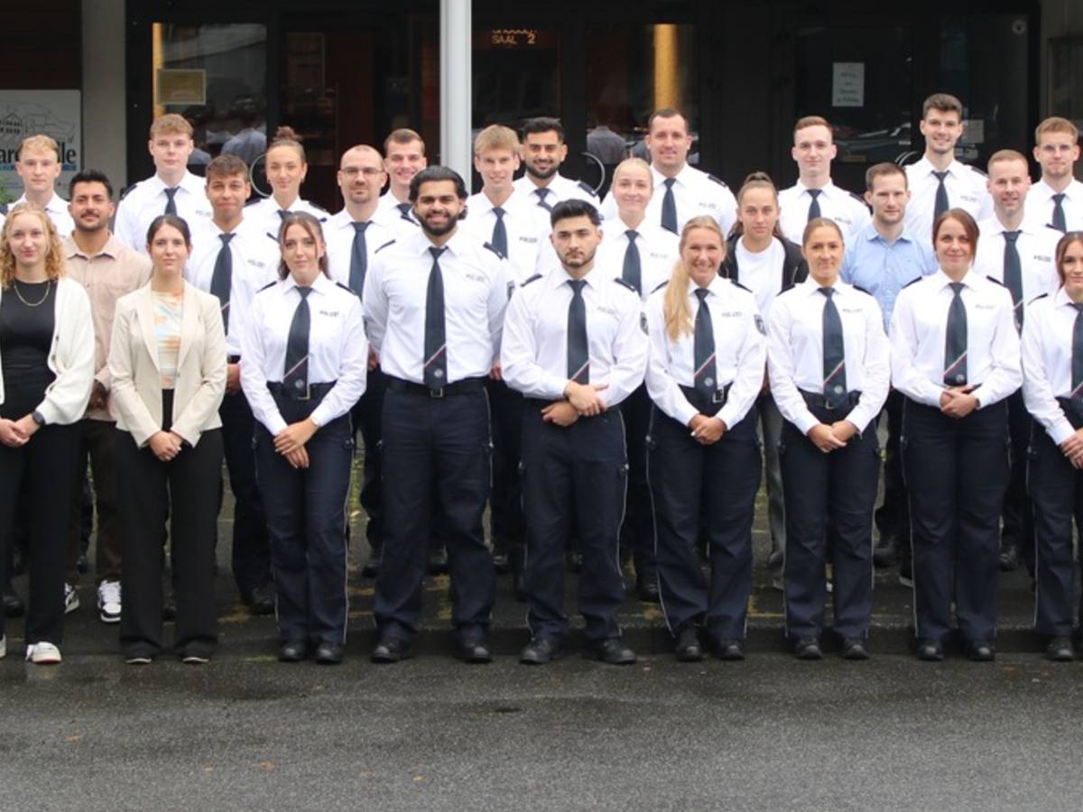Siegen - Jedes Jahr am 01. September bekommen die Polizeibehörden in NRW neues Personal. Siegen-Wittgenstein darf sich in diesem Jahr über 33 neue Beamtinnen und Beamte freuen. Im Rahmen einer Begrüßungsveranstaltung hießen Landrat und Behördenleiter Andreas Müller, Abteilungsleiter der Polizei Leitender Polizeidirektor Klaus Bunse sowie alle Direktionsleitungen die "Neuen" herzlich willkommen. 31 frischgebackene Polizeikommissarinnen und Polizeikommissare dürfen nach ihrem bestandenen Studium nun erste Diensterfahrungen in Siegen-Wittgenstein sammeln. Die Direktionen Kriminalität und Verkehr bekommen darüber hinaus Unterstützung von zwei Oberkommissaren. "Nach Klausuren, Hausarbeiten und Thesis heißt es nun Strafanzeigen und Verkehrsunfälle aufnehmen. Sie übernehmen ab sofort tagtäglich im Rahmen ihrer Dienste eine verantwortungsvolle Aufgabe: Sie sorgen für Sicherheit!", so Landrat Andreas Müller im Rahmen seiner Begrüßungsworte. Auch der Abteilungsleiter der Polizei, Leitender Polizeidirektor Klaus Bunse, freute sich über das frische Personal: "Ich wünsche Ihnen einen guten Start in Ihren neuen Dienststellen und dass Sie nach dem Dienst immer gesund nach Hause zurückkehren können." Außerdem gab er den jungen Kommissarinnen und Kommissaren einen Rat mit auf den Weg: "Seien Sie vorsichtig und beherzigen Sie all das, was sie im Rahmen Ihrer Ausbildung gelernt haben." Für 26 Polizeikommissarinnen und Polizeikommissare heißt es ab sofort Streife fahren auf den verschiedenen Wachen in Siegen-Wittgenstein. Fünf Kriminalkommissarinnen und Kriminalkommissare sowie ein Kriminaloberkommissar unterstützen nun die Direktion Kriminalität in unterschiedlichen Kommissariaten. Ein Polizeioberkommissar ist zur Direktion Verkehr versetzt worden.