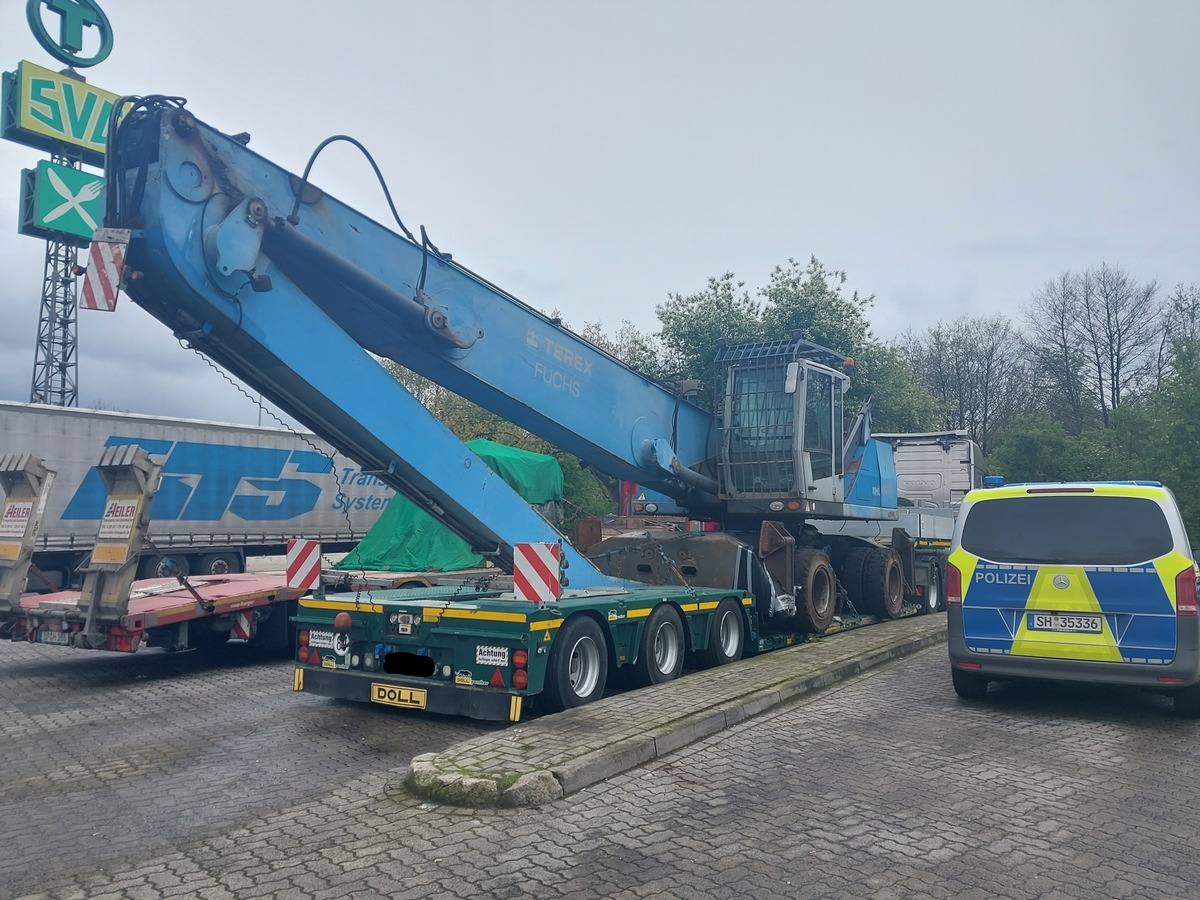 26.04.2024 - 11:25:03 | presseportal.deDie Kollegen kontrollierten diverse Fahrzeuge. Eines davon fiel ihnen besonders auf. Ein Umschlagbagger "Fuchs", welcher auf eine weite Reise von Dänemark nach Polen gehen sollte. Bei einem Gesamtgewicht von 60 Tonnen schauten die Kollegen besonders hin. Dabei stellten sie erhebliche Mängel fest. Selbst eine Fachfirma konnte vor Ort die Probleme nicht beheben.