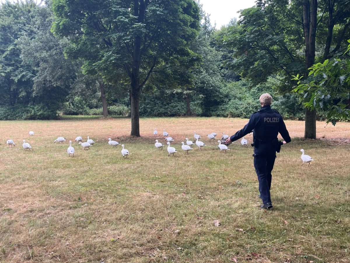 16.07.2025 - 21:02:51 | presseportal.deVon der angrenzenden Naherholungsanlage Jröne Meerke hatten sich 30-40 Gänse auf die Viersener Straße begeben, um dort den Verkehr zu "regeln".