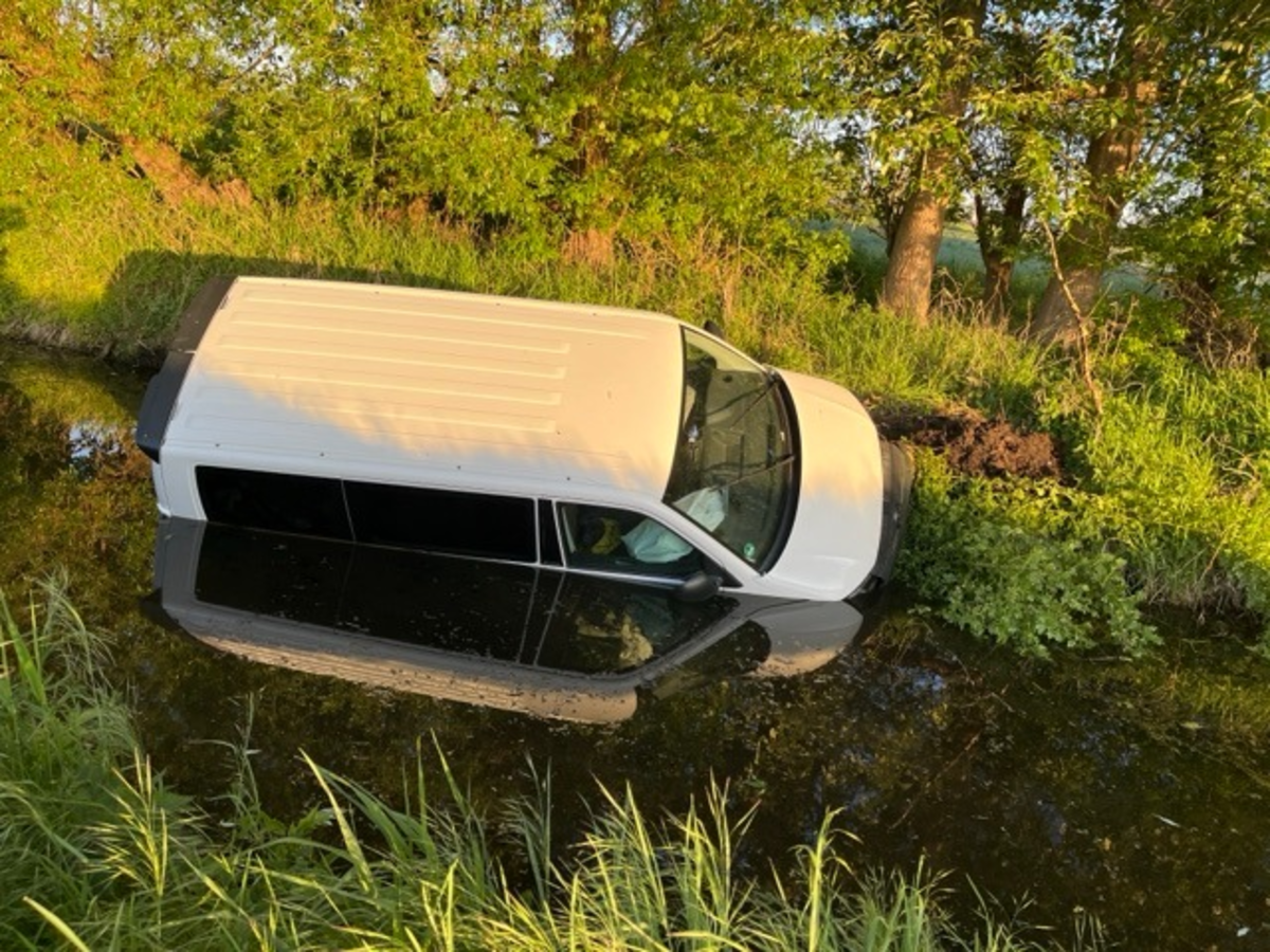 Neustadt-Glewe/ Stolpe - Bei einem Verkehrsunfall am Dienstagmorgen auf der A24 bei Neustadt-Glewe ist ein 38-jähriger Transporterfahrer leicht verletzt worden. Nach bisherigen Erkenntnissen ist das Fahrzeug zwischen den Anschlussstellen Neustadt-Glewe und dem Kreuz-Schwerin ungebremst auf gerader Strecke nach rechts von der Fahrbahn abgekommen. Der Kleintransporter fuhr über eine Wiese weiter und kam letztlich erst in einem Graben zum Stehen (Foto). Dabei erlitt der 38-jährige polnische Fahrzeugführer leichte Verletzungen, die vor Ort vom Rettungsdienst behandelt wurden. Am Fahrzeug entstand Sachschaden von etwa 18.000 Euro. Die Kammeraden der Freiwilligen Feuerwehr aus Neustadt-Glewe konnten den Kleintransporter aus dem Graben bergen. Die Polizei hat vor Ort den Verkehrsunfall aufgenommen und ermittelt nun zur genauen Unfallursache, wobei ein Sekundenschlaf beim 38-Jährigen nicht ausgeschlossen werden kann. Hinweise auf die Beeinflussung von Alkohol oder anderen berauschenden Mittel wurden nicht festgestellt.