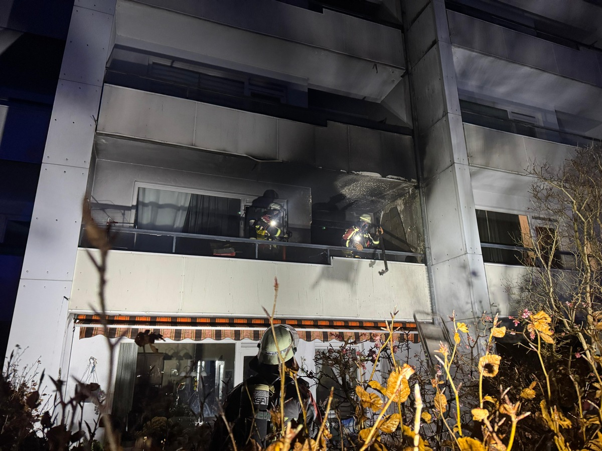 Um 02:37 Uhr wurde die Feuerwehr Norderstedt mit dem Alarmstichwort "Feuer" und dem Zusatz "Hochhaus" in die Mittelstraße alarmiert. Vor Ort sollte ein Balkon brennen und das Feuer auf die angrenzende Wohnung übergreifen. Umgehend rückten Einsatzkräfte der Silvesterbereitschaft der Freiwilligen Feuerwehr Glashütte und der Freiwilligen Feuerwehr Harksheide zu Einsatzstelle aus. Zudem wurde die Freiwillige Feuerwehr Garstedt mit dem Sonderalarm "Drehleiter" alarmiert. Als die Einsatzkräfte wenige Augenblicke nach Alarmierung vor Ort eintrafen, bestätigte sich die Lage. Ein Feuer auf dem Balkon war dabei sich auf die Wohnung auszubreiten. Durch die Hitzeentwicklung war eine Fensterscheibe bereits zerstört und Brandrauch drang in die Wohnung. Umgehend wurden die Menschenrettung und Brandbekämpfung über tragbare Leitern und den Treppenraum des Gebäudes eingeleitet. Dabei wurde eine Person durch die Feuerwehr aus der betroffenen Wohnung gerettet und ebenso, wie eine weitere Person, an den Rettungsdienst übergeben. Der Löschangriff zeigte schnell Wirkung, so dass der Brand auf dem Balkon nach wenigen Augenblicken unter Kontrolle war. Die Nachlöscharbeiten, Belüftungsmaßnahmen und Kontrolle von Fassade und der darüber liegenden Wohnung zogen sich indes noch einige Zeit hin. Vor Ort war die Feuerwehr Norderstedt mit 31 Kräften im Einsatz. Zur Brandbekämpfung wurden zwei C-Rohre eingesetzt. Einsatzende für die Feuerwehr war rund zwei Stunden nach Alarmierung.