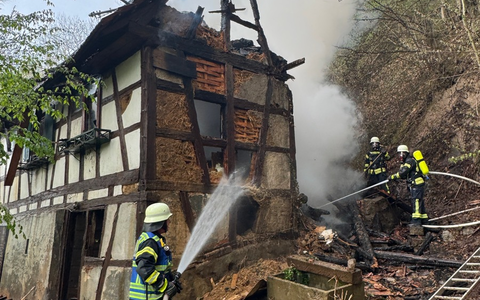 Die Feuerwehr wird noch mehrere Stunden mit Löscharbeiten der Glutnester beschäftigt sein. Das Haus ist einsturzgefährdet und darf nicht mehr betreten werden.