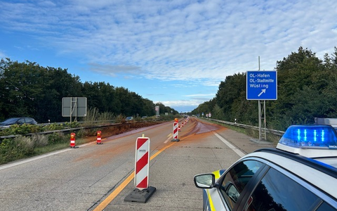 Oldenburg - +++ Am 02.10.2024, um 14.33 Uhr, befĂ€hrt ein 26 Jahre alter Oldenburger mit seinem Sattelzug mit Muldenauflieger die Autobahn 29 in Fahrtrichtung Wilhelmshaven. Kurz vor der Anschlussstelle Oldenburg-Hafen muss er eine starke Bremsung durchfĂŒhren. Hierbei kommt es zum Auslaufen von Eisenschlamm aus dem Auflieger. Dieser gerĂ€t auf die Fahrbahn und verschmutzt diese stark. FĂŒr Reinigungsarbeiten muss die Autobahn 29 ab dem Autobahnkreuz Oldenburg-Ost voll gesperrt werden. Der Verkehr wird ĂŒber die A 28 umgeleitet. Hierbei kommt es zu erheblichen Verkehrsbehinderungen und Staubildungen rund um das Stadtgebiet Oldenburg. Bei dem ausgetretenen Stoff handelt es sich um ein Abfallprodukt, welches bei der Trinkwasserherstellung entsteht. Dieses ist nach einer ersten EinschĂ€tzung eines Fachberaters der Feuerwehr unbedenklich und wird zum Beispiel als DĂŒngemittel in der Landwirtschaft eingesetzt. Bei Verunreinigungen kann es mit Wasser entfernt werden. +++