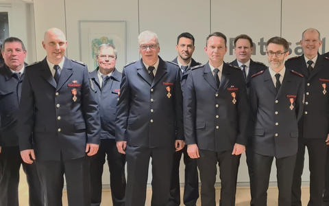 Als besonderer Jubilar konnte Stadtbrandinspektor Dieter Huckestein für insgesamt 50 aktive Dienstjahre geehrt werden. Er erhielt das Feuerwehr-Ehrenzeichen in Gold mit Goldkranz.