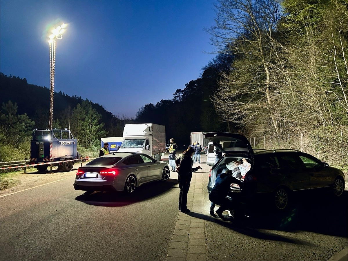 Pirmasens - Im Rahmen einer behördenübergreifenden Kontrollaktion unter Federführung der Polizeiinspektion Pirmasens wurde am Donnerstagabend auf der Bundesstraße 10 bei Pirmasens eine Großkontrolle durchgeführt. Der Schwerpunkt lag hierbei auf der Überprüfung der Verkehrssicherheit und der fortlaufenden Bekämpfung der Eigentumskriminalität. Die Kontrollmaßnahmen erstreckten sich über einen Zeitraum zwischen 18 bis 22.30 Uhr. Die Polizeiinspektion Pirmasens wurde hierbei durch Einsatzkräfte des Polizeipräsidiums Einsatz, Logistik und Technik, der Bundespolizei Kaiserslautern, der Gendarmerie, der Deutsch-Französischen-Einsatzeinheit und des Zolls unterstützt. Insgesamt wurden 72 Fahrzeuge kontrolliert. Neben den kontrollierten Fahrzeugen wurden auch insgesamt knapp 60 Personen polizeilich überprüft. Es wurde eine Vielzahl von polizei- wie auch strafrechtlich relevanten Delikten festgestellt, darunter Verstöße gegen das Betäubungsmittelgesetz, mehrere Trunkenheitsfahrten unter dem Einfluss von Betäubungsmitteln, sowie diverse Mängel hinsichtlich der Verkehrssicherheit der geführten Fahrzeuge. Durch die Kräfte des Zolls und der Bundespolizei wurden zudem Strafverfahren in eigener Zuständigkeit hinsichtlich der illegalen Einfuhr von Betäubungsmitteln eingeleitet. |pdps