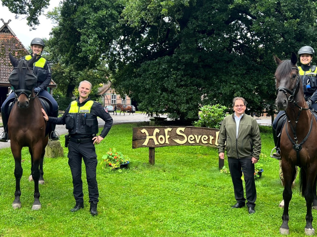 Die berittene Polizei zur Heideblütenzeit ist ein fester Bestandteil im Naturpark Südheide. Landrat Axel Flader dankt Imke Wiedenroth, Gemma Wisotzki sowie Frank Freienberg, dem Leiter der Polizeiinspektion Celle: "Wir sind als Landkreis Celle der Träger des Naturparkes und unsere Aufgabe ist es, diese Natur zu schützen. Das können wir nicht alleine, dafür sind wir auf die Unterstützung der Polizei angewiesen. Dieses Engagement wissen wir sehr zu schätzen, und deshalb unterstützen wir den Einsatz der Polizeireiterinnen immer wieder gerne. Vielen Dank für Ihren Einsatz zum Wohle der Natur und der Allgemeinheit."
