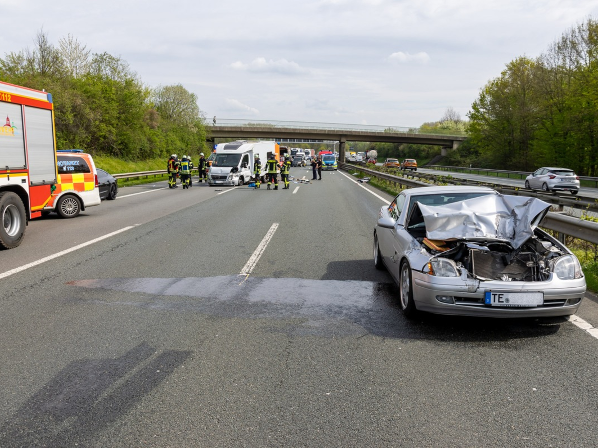 Die Einsatzstelle lag auf der A2 in Fahrtrichtung Dortmund zwischen der Autobahnbrücke Ellernstraße und der Abfahrt Vennebeck. Aus bislang unbekannter Ursache war es zwischen einem Wohnmobil und einem PKW Mercedes zu einer Kollision gekommen. Das Wohnmobil war in der Folge in die Leitplanken am rechten Fahrbahnrand eingeschlagen, es kam auf dem rechten und mittleren Fahrstreifen zum Halt. Der Mercedes stand einige Meter weiter auf dem linken Fahrstreifen. Bei Eintreffen war niemand eingeklemmt. Ersthelfer hatten die beiden Personen aus den Fahrzeugen befreit und versorgt. Der Rettungsdienst übernahm die weitere Versorgung und den Transport in Kliniken nach Minden und Herford. Die Feuerwehr sicherte die Einsatzstelle ab und nahm auslaufende Betriebsmittel mit Bindemitteln auf. Die Batterien der Unfallfahrzeuge wurden abgeklemmt. Die Einsatzstelle wurde gegen 13:30 Uhr der Polizei übergeben. Die Unfallermittlung dauert an, Autobahnmeisterei und Bergungsunternehmen waren auf der Anfahrt. Die A2 ist in Fahrtrichtung Dortmund vollgesperrt, es entstand ein erheblicher Rückstau.