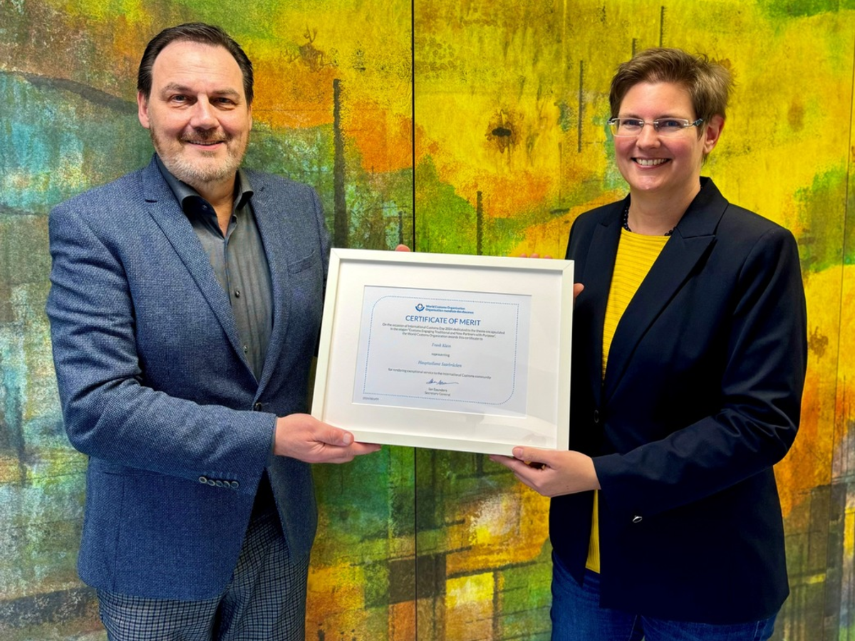 HZA-SB: Zoll verleiht Zertifikate zum Weltzolltag - Partnerschaften für ein sicheres und nachhaltiges globales Umfeld