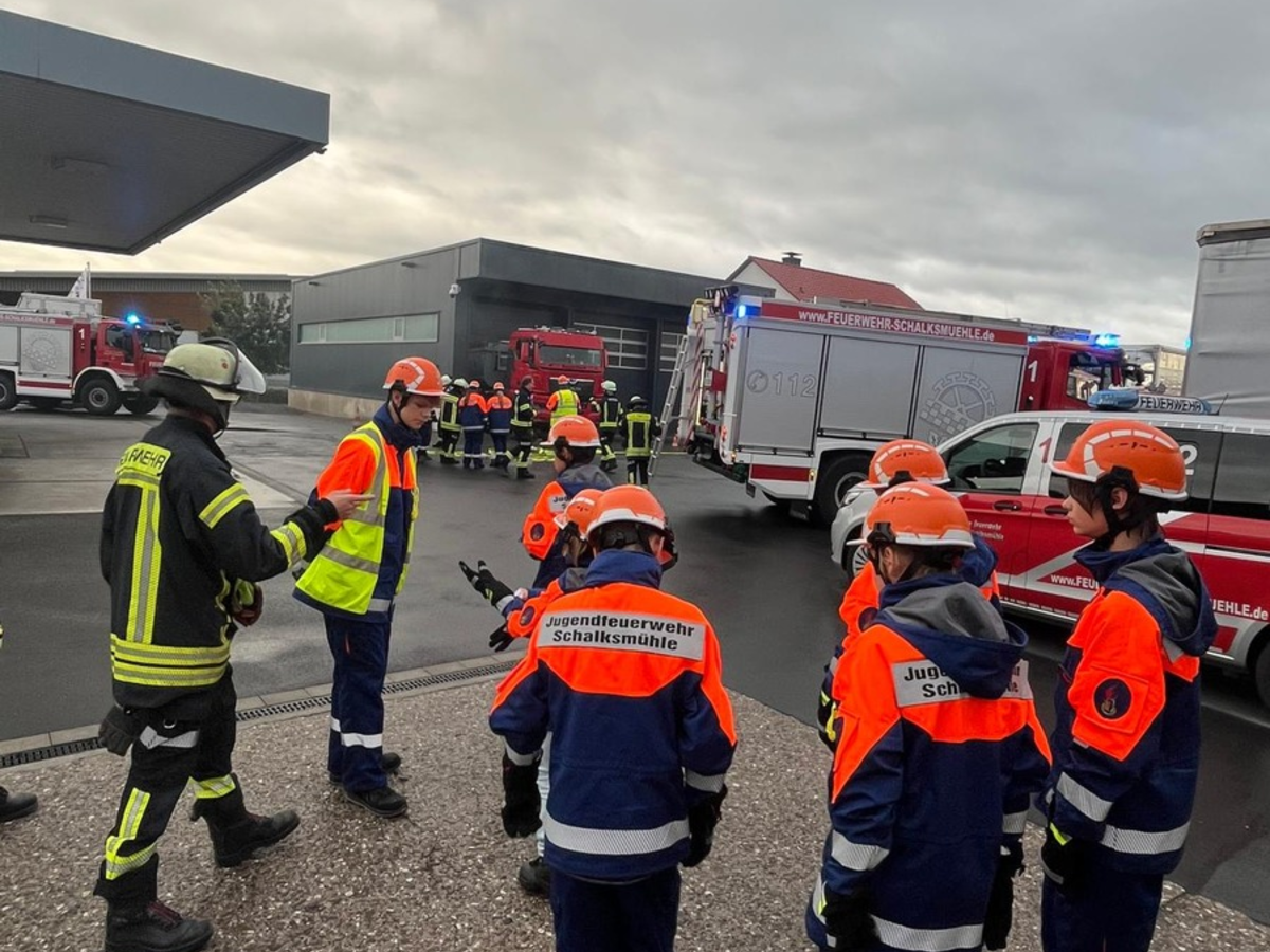 Die Löschgruppe Schalksmühle übte zusammen mit der Jugendfeuerwehr Schalksmühle auf dem Gelände des Transportunternehmens von unserem Kameraden Carsten Koch. Angenommen wurde, dass ein Arbeiter beim Schweißen einen Unfall erlitt, unter dem LKW eingeklemmt wurde und das Fahrzeug durch das Schweißen in Brand geriet. Die Jugendfeuerwehr übernahm diesen Einsatz. Hierbei wurde sie von den aktiven Einsatzkräften unterstützt und angeleitet. Der Brand wurde gelöscht, eine Achse des LKW wurde mittels Hebekissen angehoben und der Patient konnte gerettet werden. "Die Kinder und Jugendlichen hatten, ebenso wie die Mitglieder der Löschgruppe Schalksmühle, viel Spaß bei der Übung. Zudem sah man, dass der Feuerwehrnachwuchs in Schalksmühle bereits jetzt gut ausgebildet ist.", freute sich Tobias Katte, als Chef der Jugendfeuerwehr.
