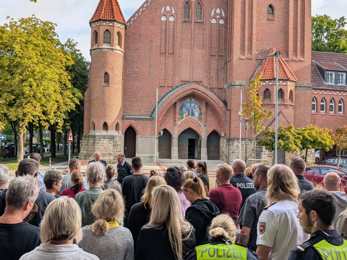 Mit dem gemeinsamen Innehalten würdigte die Polizeiinspektion Wilhelmshaven/Friesland den Einsatz und die Opferbereitschaft des Kollegen und drückte den Angehörigen ihr tief empfundenes Mitgefühl aus.