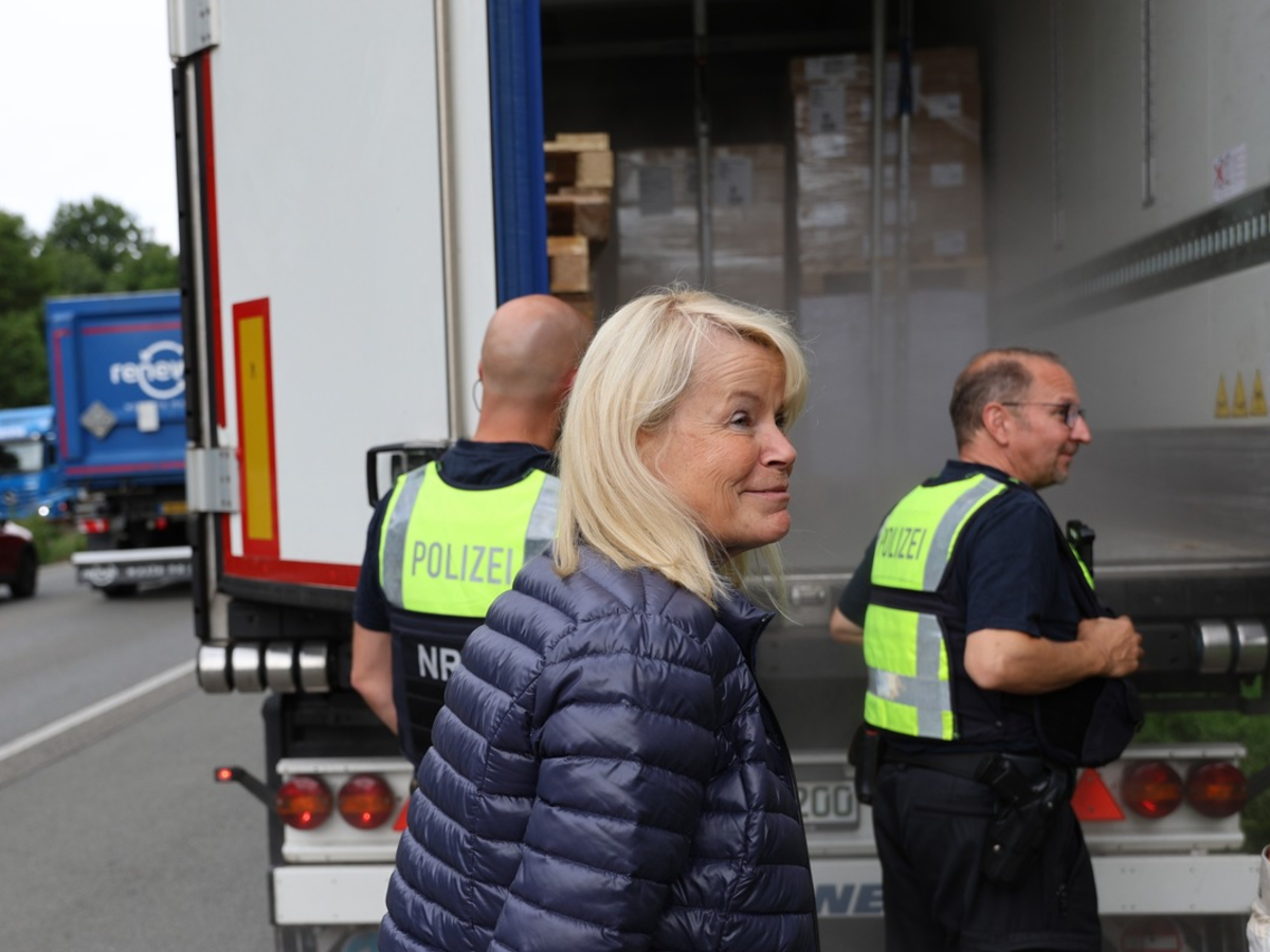 08.08.2025 - 16:03:18 | presseportal.dePolizeipräsidentin Friederike Zurhausen, die persönlich eine Kontrolle in Bottrop begleitete, stellt fest: "Das Ziel unserer Kontrollen ist klar: Mehr Sicherheit im gewerblichen Personen- und Güterverkehr. Daher kontrollieren wir heute insbesondere Ladungssicherung, Fahrtüchtigkeit, aber auch Einhaltung der Lenk- und Ruhezeiten oder schauen nach Hinweisen auf Manipulationen der Fahrtenschreiber."