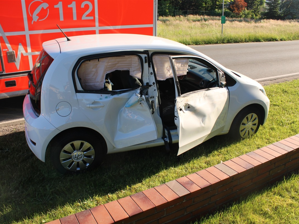Der VW Up war aufgrund seiner Beschädigungen nicht mehr fahrbereit und musste abgeschleppt werden.