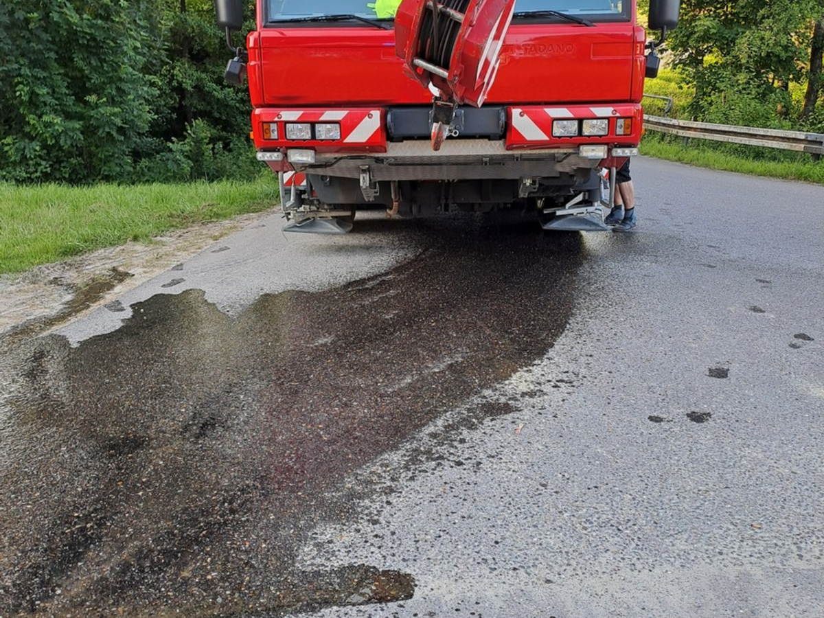 13.06.2025 - 09:13:55 | presseportal.deVor Ort konnte folgende Lage festgestellt werden. Ein Mobilkran hatte aufgrund eines technischen Defekts ca. 30 Liter Hydrauliköl verloren. Das ausgelaufene Öl hatte sich bereits großflächig um das Fahrzeug ausgebreitet. Der Kranfahrer hatte bereits erste Maßnahmen zur Eindämmung unternommen. Seitens Feuerwehr wurde der Bereich mit Ölbindemittel abgestreut und eine weitere Ausbreitung in Richtung Fahrbahnrand verhindert. Der Kran stand zu diesem Zeitpunkt in unmittelbarer Nähe zur Stockacher Aach. Eine Ausbreitung Richtung Aach konnte ebenfalls verhindert werden. Im weiteren Verlauf hat die Polizei eine Fachfirma mit der Reinigung der Fahrbahn beauftragt. Seitens Feuerwehr waren keine weiteren Maßnahmen erforderlich.