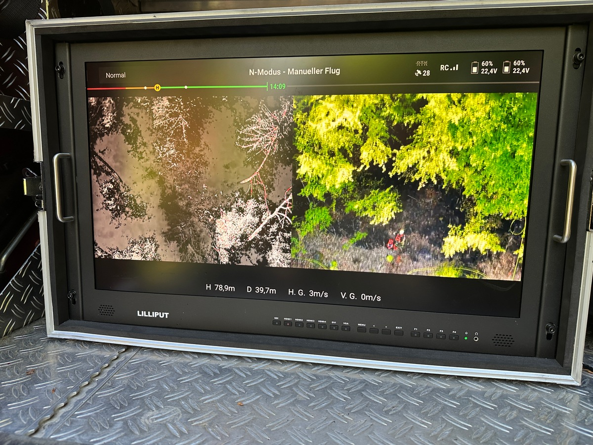 25.04.2026 - 18:50:29 | presseportal.deRund 50 Einsatzkräfte der Feuerwehr konnten eine weitere Brandausbreitung verhindern. Hierzu kamen zwei Tanklöschfahrzeuge-Waldbrand, ein Großtanklöschfahrzeug mit 10.000 Litern Löschwasser und eine Feuerwehrdrohne zum Einsatz. Die Tanklöschfahrzeuge pendelten in das Waldgebiet um die Einsatzstelle mit Löschwasser zu versorgen. Die Einsatzkräfte verschafften sich über Leitern und Seile Zugang zu der Brandstelle und löschten das Feuer mit Löschrucksäcken und einer Wasserleitung ab. Bei den aufwändigen Nachlöscharbeiten musste der Waldboden an mehreren Stellen geöffnet werden. Um weitere Glutnester zu finden wurden mehrere Wärmebildkameras am Boden und über eine Feuerwehrdrohne aus der Luft eingesetzt.