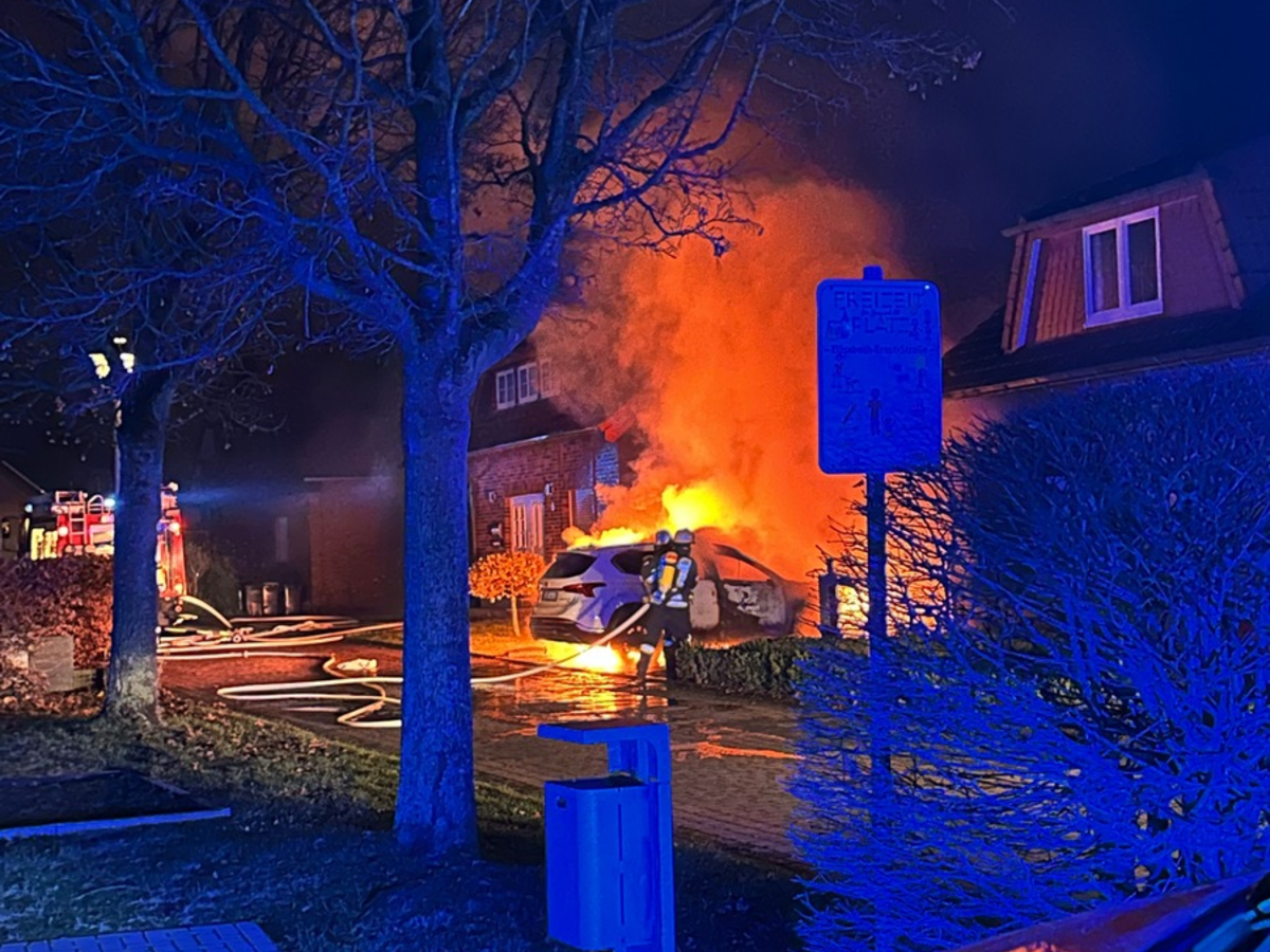 15.12.2023 - 10:42:49 | presseportal.deBei Eintreffen der ersten Einsatzkräfte brannte der vor einer Garage geparkte Pkw in voller Ausdehnung und das Feuer drohte auf das Wohngebäude überzugreifen. Unmittelbar wurde ein Löschangriff eingeleitet. Zudem wurde das Alarmstichwort auf "Feuer 3" erhöht und der Löschzug Nordkirchen rückte ebenfalls zur Einsatzstelle aus.