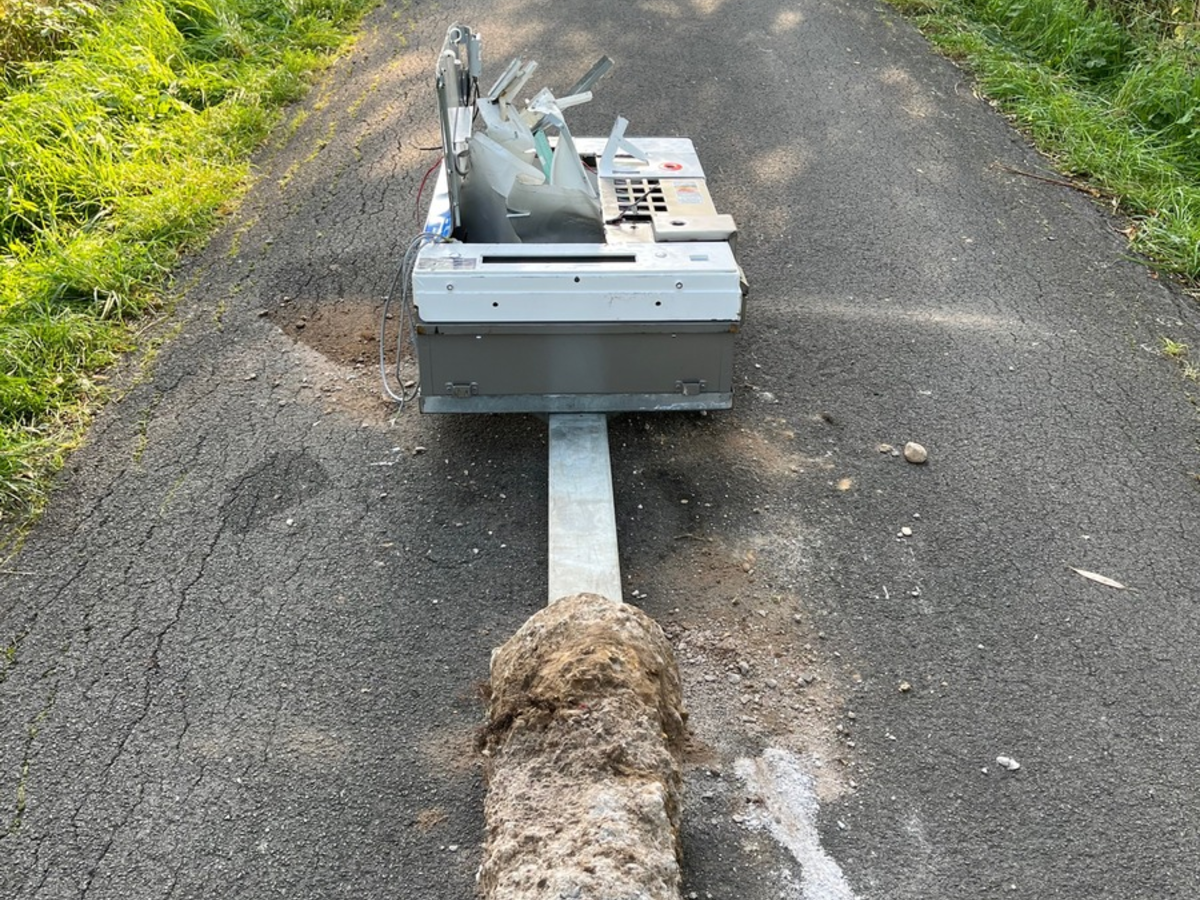 14.08.2025 - 09:42:44 | presseportal.deEin Zeuge meldete, dass ein kompletter Automat schwer beschädigt auf der Fahrbahn des Gunnewegs liege. Der oder die Täter hatten das Gerät samt Fundament aus dem Boden gerissen, komplett entleert und dann dort zurückgelassen.